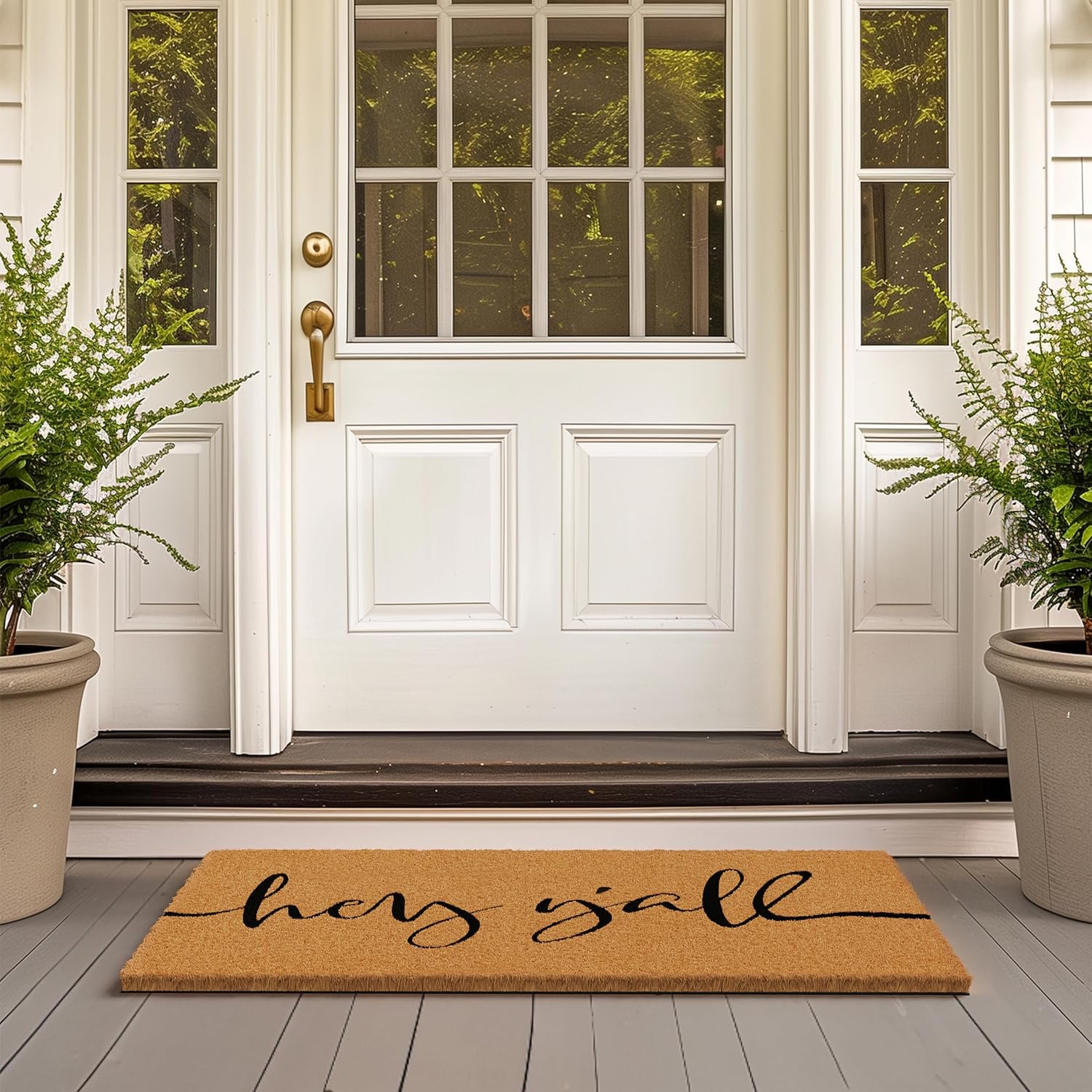 - Say Hello in Style - Welcome guests into your home with our eye-catching Hey Y’all Doormat; it’s the perfect indoor or outdoor welcome mat for front door. The doormat’s bold design and large lettering make it impossible to miss, adding a touch of southern charm and hospitality to any entryway.
