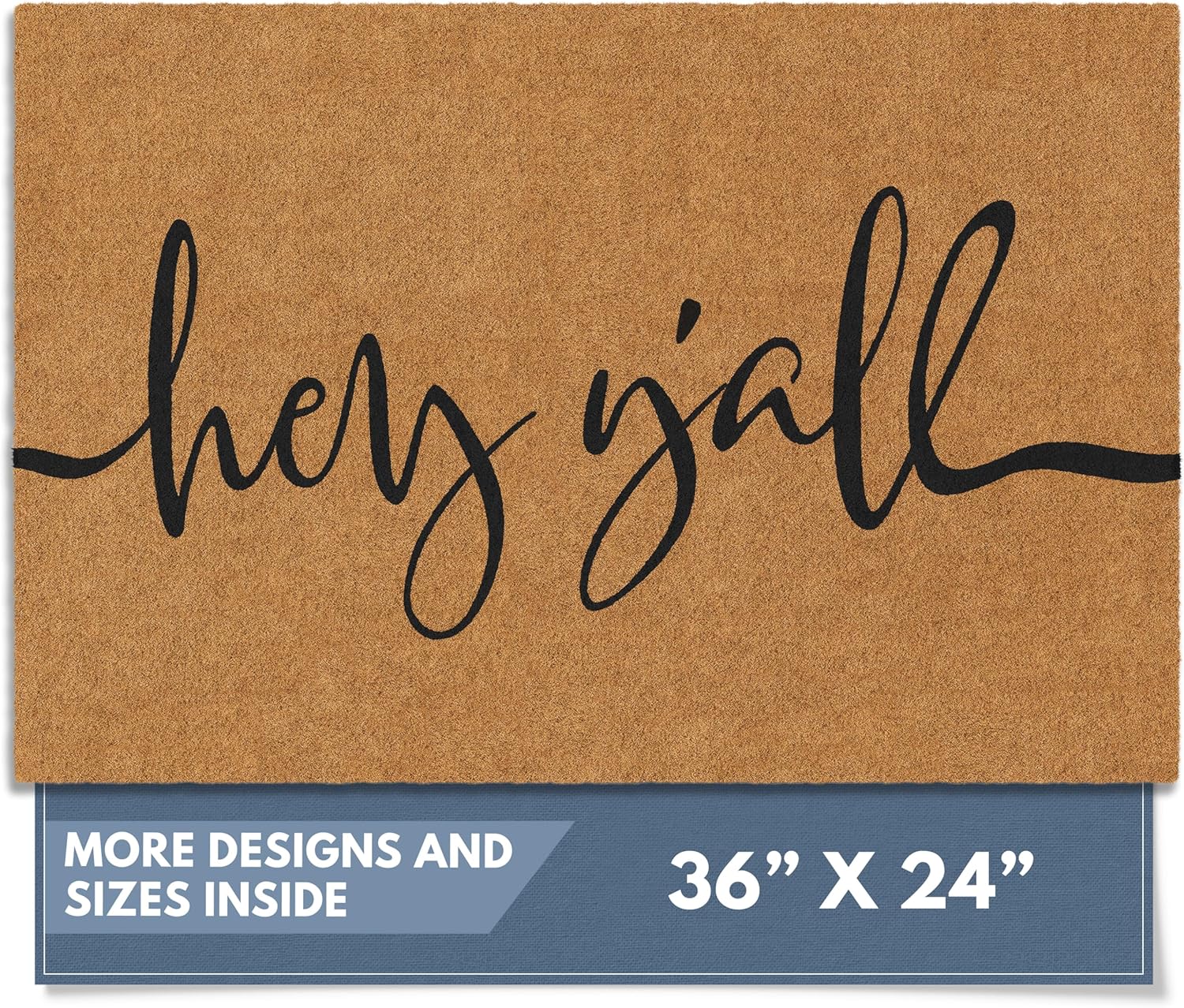 - Versatile - Our Hey Y’all welcome doormat outdoor entrances is not only perfect for patios, but also makes a great welcome mat for outdoor events or camping trips. Its durable construction is perfect for cleaning dirt and debris from shoes, and the all-weather coir fibers dry quickly. Use it to welcome guests to your home, cabin, or RV.