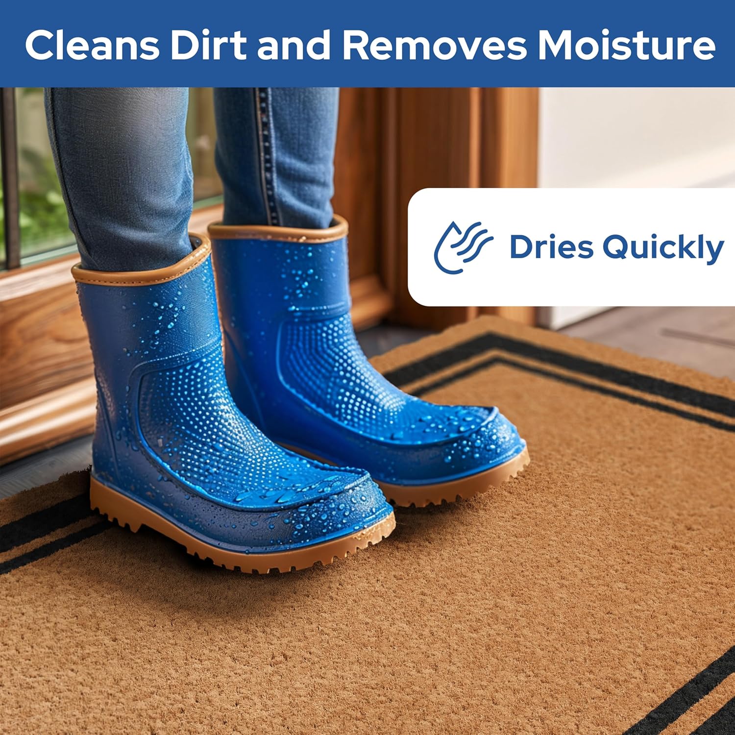 - Versatile - Our rectangle border design welcome doormat outdoor entrances is not only perfect for patios, but also makes a great welcome mat for outdoor events or camping trips. Its durable construction is perfect for cleaning dirt and debris from shoes, and the all-weather coir fibers dry quickly. Use it to welcome guests to your home, cabin, or RV.