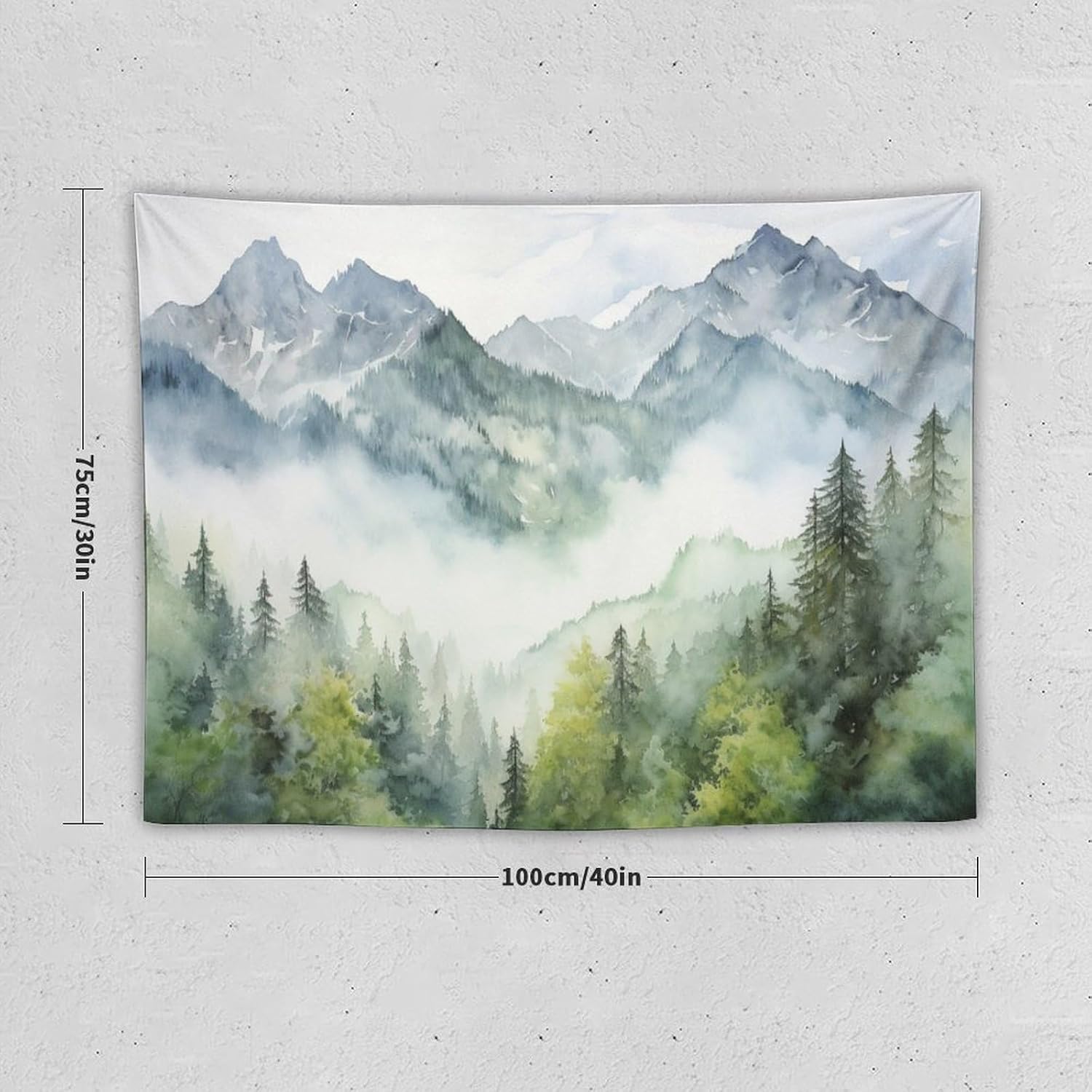 HZOHNAGO Mountain Tapestry Misty Green Forest Mountain Pattern Printed Wall Tapestry Wall Hanging for Bedroom Living Room Dorm 40" W x 30" H