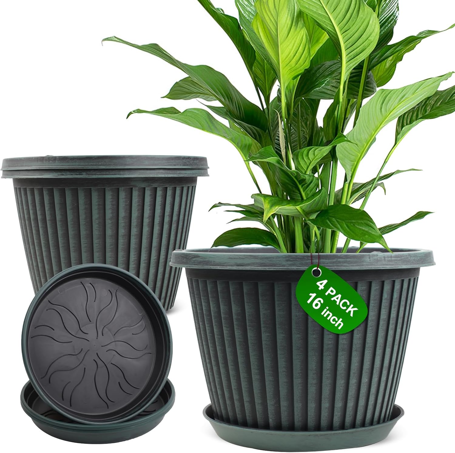 - 【MODERN STYLE PLANTERS】 Indoor planters with saucers provide a unique,nice style in ribbed design which gives an understated elegance that will enhance the beauty of your plant. These 16 inch plant pots are available in red-brown &blue-green & gold finished with a black antique stain. Plastic flower pots would be a beautiful addition to anyone’s deck or sunroom or house!