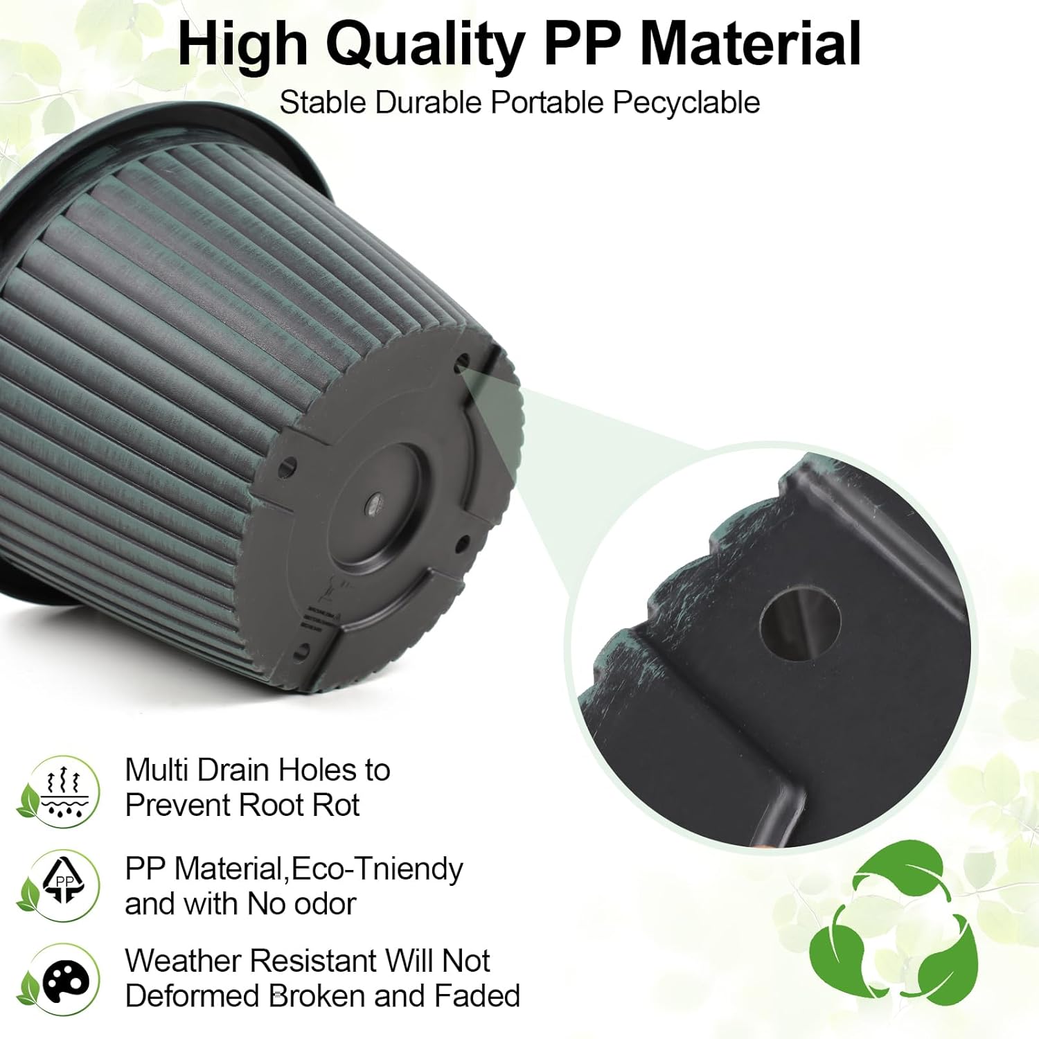 - 【Perfect Size & sturdy Material】Top diameter: 16 inch, bottom diameter: 10.8 inch, height: 11.02 inch, capacity: 7 gallon. Plastic plant pots are made of recyclable polypropylene resin which is lightweight but sturdy, not easy crack. These indoor outdoor planters are UV and weather resistant. 10 inch flower pot is perfect for planting medium to large sized plants.