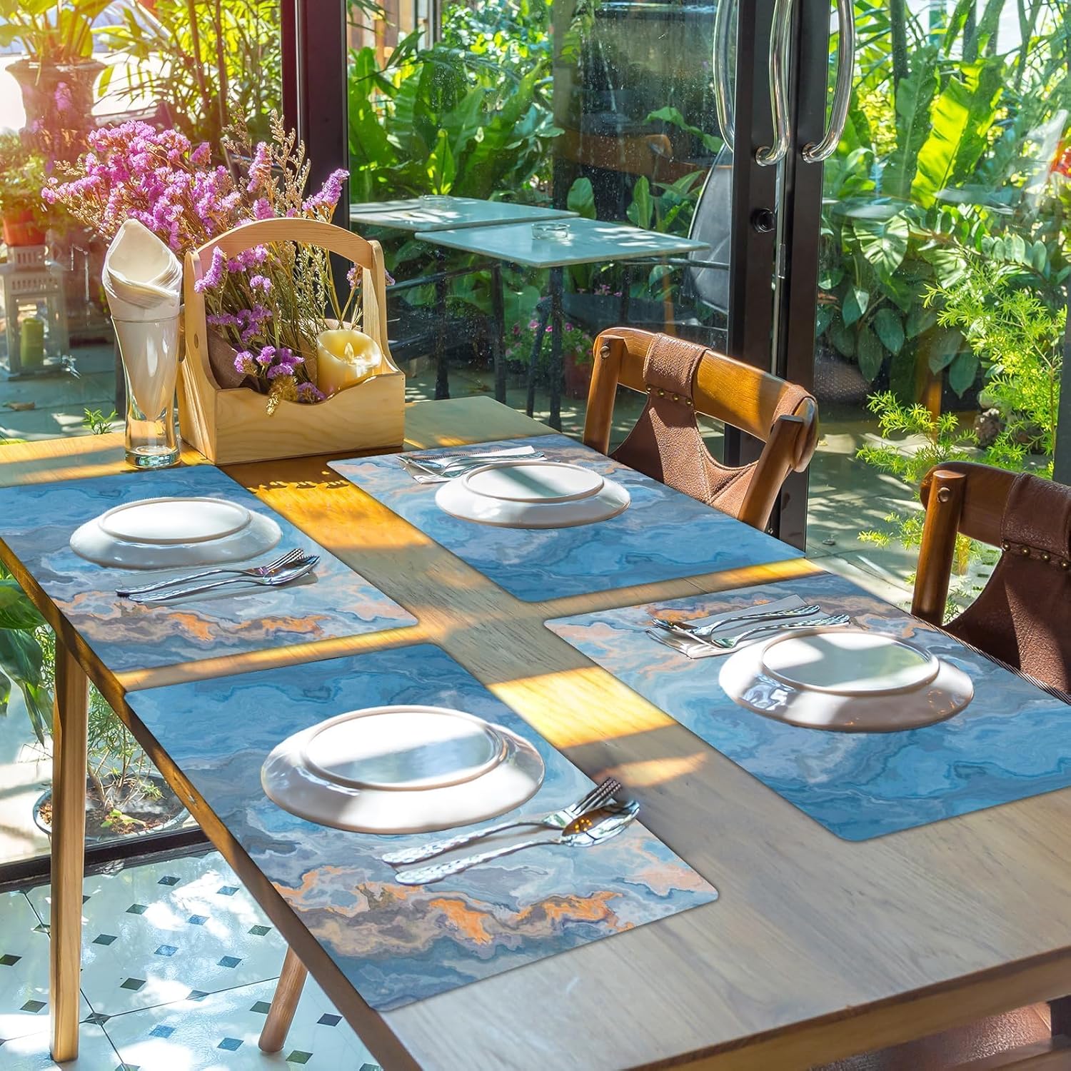 - Easy to clean: With their effortless cleaning process, this blue marble placemats dining table mat set saves your time. Simply rinse them with water or wipe them clean with a paper towel, and they will be good as new.