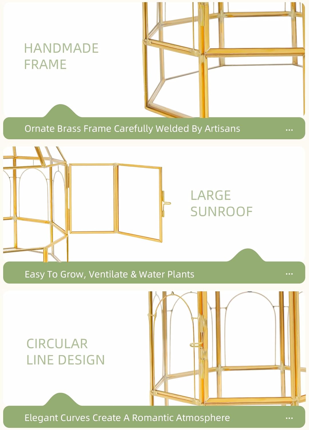 - [Unique Handicraft] The brass frame of this terrarium was welded carefully by craftsmen, and each piece of glass was assembled by their hands. Every REDHUGO TERRARIUM is an unique handicraft.