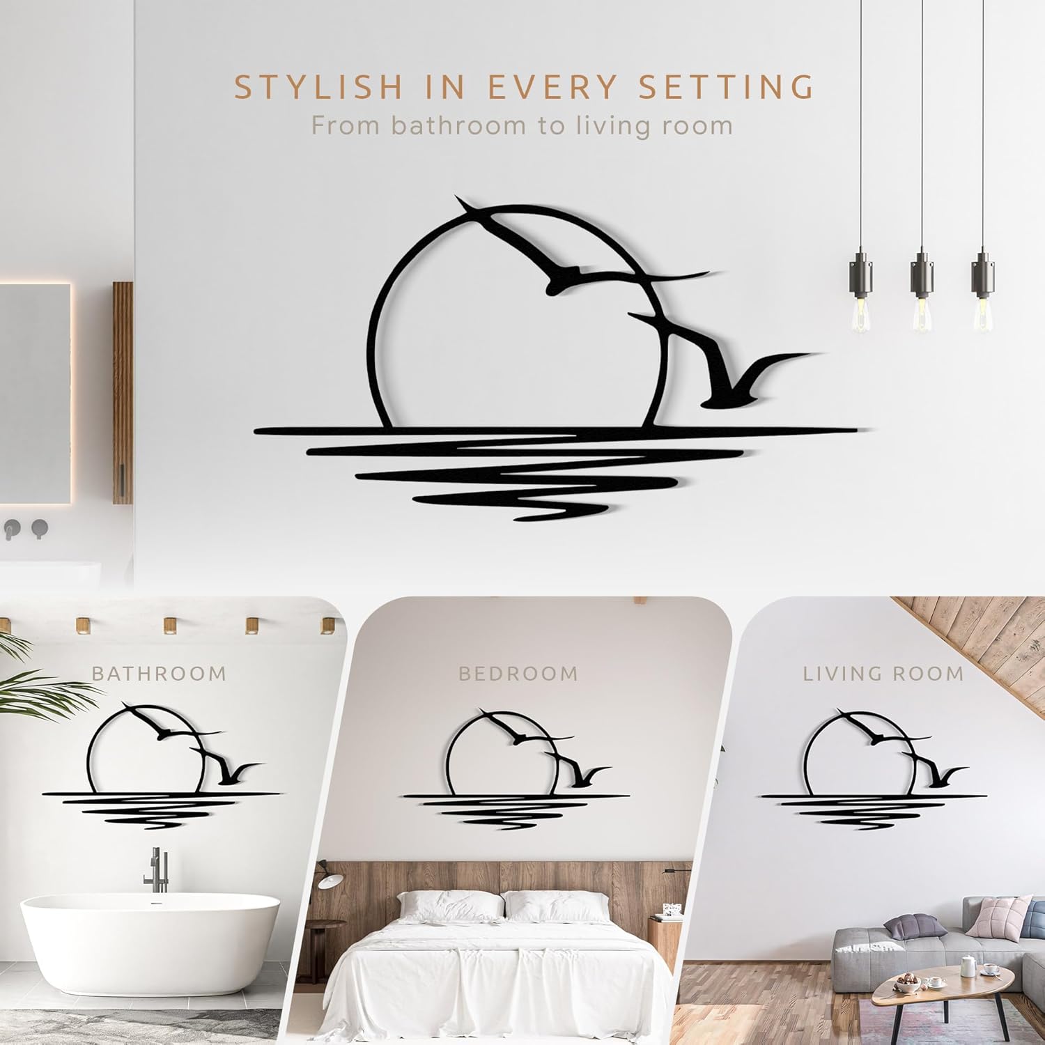 Wita Home Sunset with Seagulls Metal Wall Mounted Art, Handcrafted Metal Home Decor with Static Powder Coating, Eye-Catching Addition to Living Room Decor, Modern Beach Decor for Indoor and Outdoor Spaces, Perfect Housewarming Gift (32 x 16 inches)