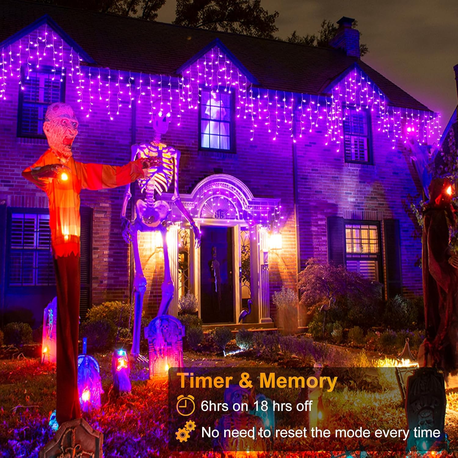 66ft Purple Halloween Lights Outdoor Indoor, 640 LED Icicle Lights for Outside Twinkle Christmas Lights with 120 Drops Clear Wire Timer 8 Modes for House Party Tree Yard Patio Eaves Holiday Decoration
