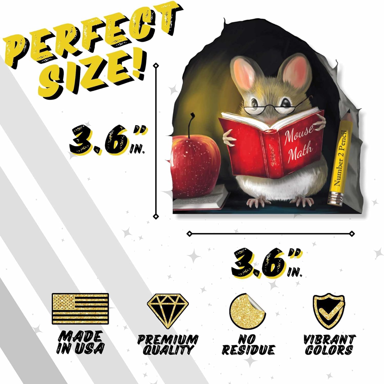 Teachers Pet Mouse Reading Book Wall Sticker Decal – Kids Room, Classroom, Home Decor, Bookcase, Book Lover Gift, Children's Bedroom, Nursery, Cute Mouse, MICESTERPIECE