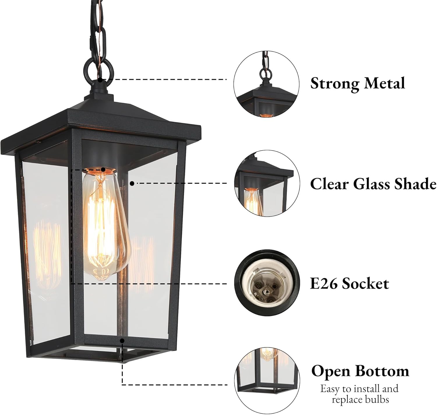 - Notable Outdoor Performance: The outdoor hanging lights are made of high-quality metal material with a special corrosion-proof matte black coating and can withstand wind and sun, humidity, and darkness without rusting easily.