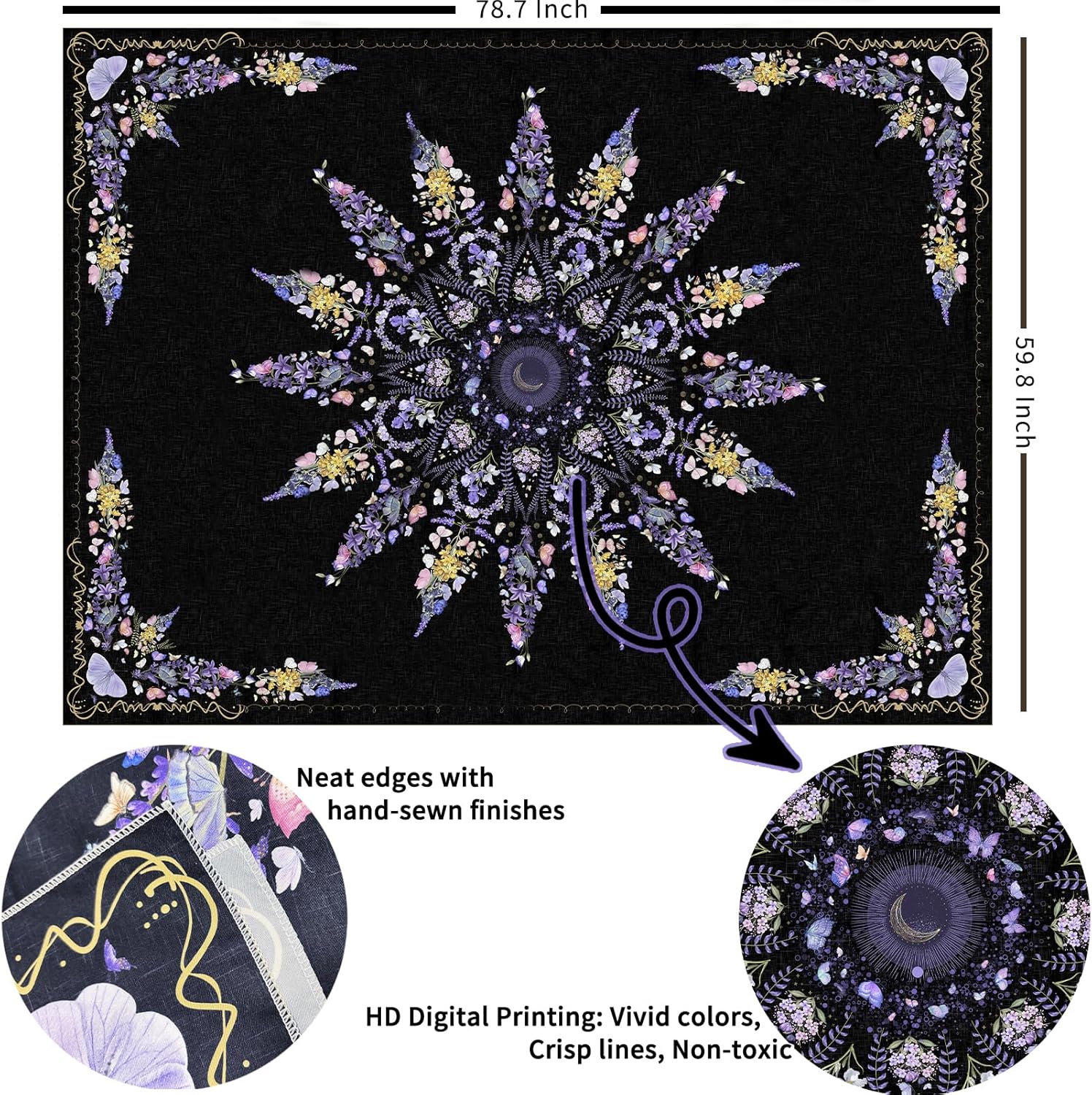 Damanse Floral Tapestry Wall Hanging Cute,Boho Wall Tapestry for Bedroom Aesthetic,Mandala Living Room Decor for Teen Girls (Purple, 59.80" x 78.70")