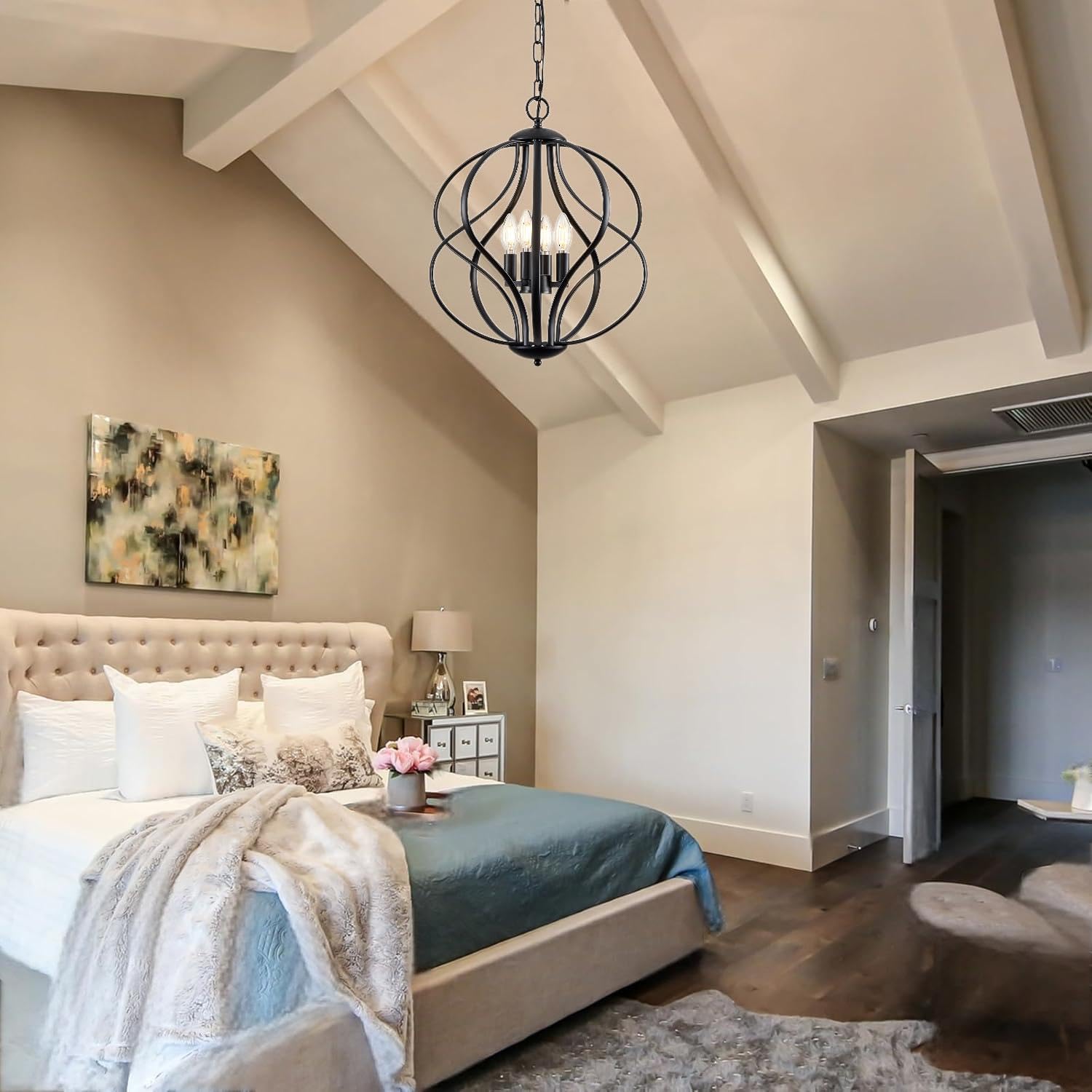 Modern Black Chandelier for Dining Room, 4 Lights Geometric Chandeliers, Sphere Chandelier Industrial Large Pendant Light Fixtures Hanging for Kitchen, Entryway, Foyer, Stairs