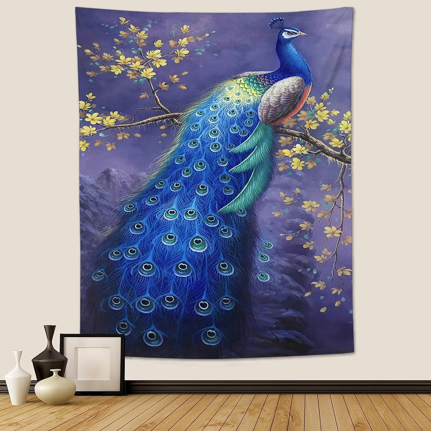 yowecso Peacock Tapestry Wall Hanging for Bedroom, Living Room - Purple Peacock Bird Tapestry - Aesthetic Wall Decor - 50"x60"