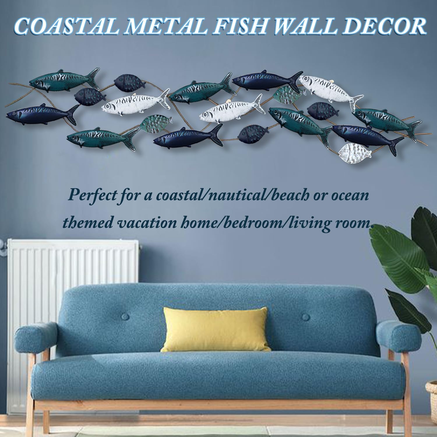 - Nautical Home Décor : this coastal nautical decor for wall features the shape of fish, vivid and funny, moving upwards as the school of fish moves. 3D metal fish wall decor is perfect for any room with coastal, nautical, beach, or boat décor. School of fish modern metal wall art will make a statement on your wall.