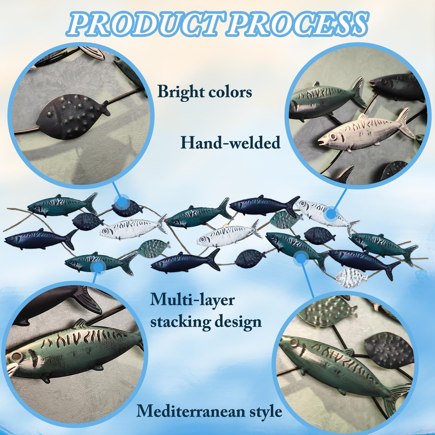 - Multi Layers Stack Design : Mediterranean style fish wall decoration, free swimming fishes make the home more comfortable. the fish wall decor is made of quality metal material, reliable and serviceable, not easy to fade or break, can keep the decoration for a long time.