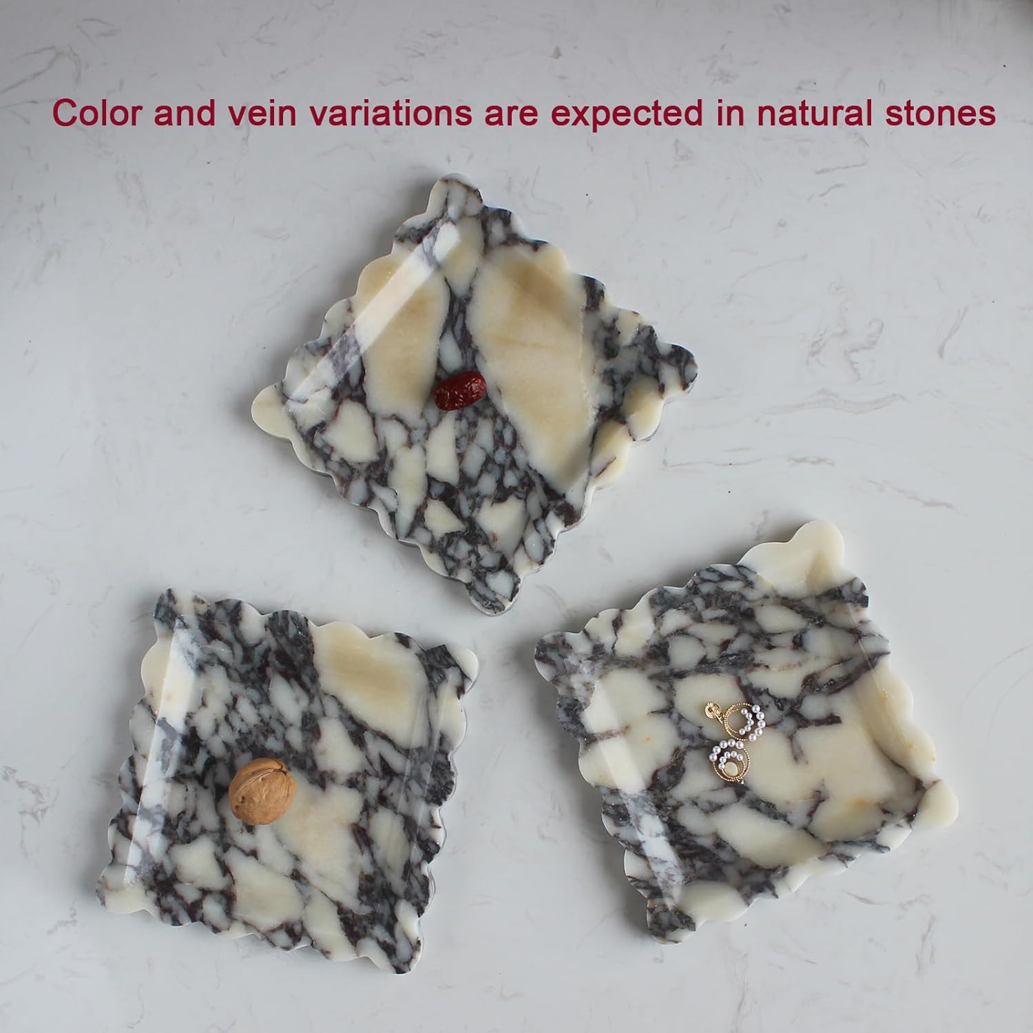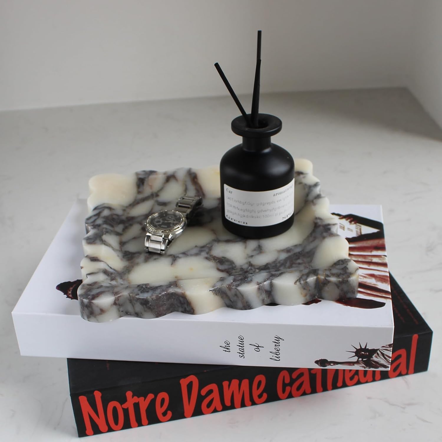 Natural Luxury Marble Tray with Scalloped Edge, Handmade Square Decorative Tray, Catch All Tray for Counter, Dresser, Nightstand and Home Décor (Calacatta Viola)