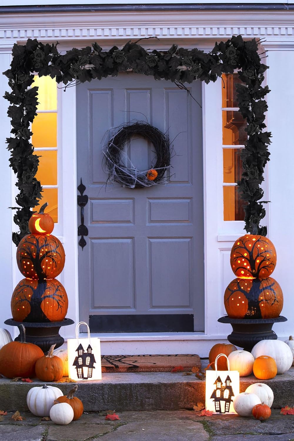 - 【Halloween Party Decorations】: Black maple leaves represent mystery and create a mystery atmosphere for your autumn theme parties, Harvest Festival decor, Christmas parties.Black garland can also decorate balcony, table top, mantel, fireplace, doorframe, doorway, stair banisters. Maple leaf vines can be bent. You can combine 4 maple vines to make them more fluffy and create a gorgeous visual effect.