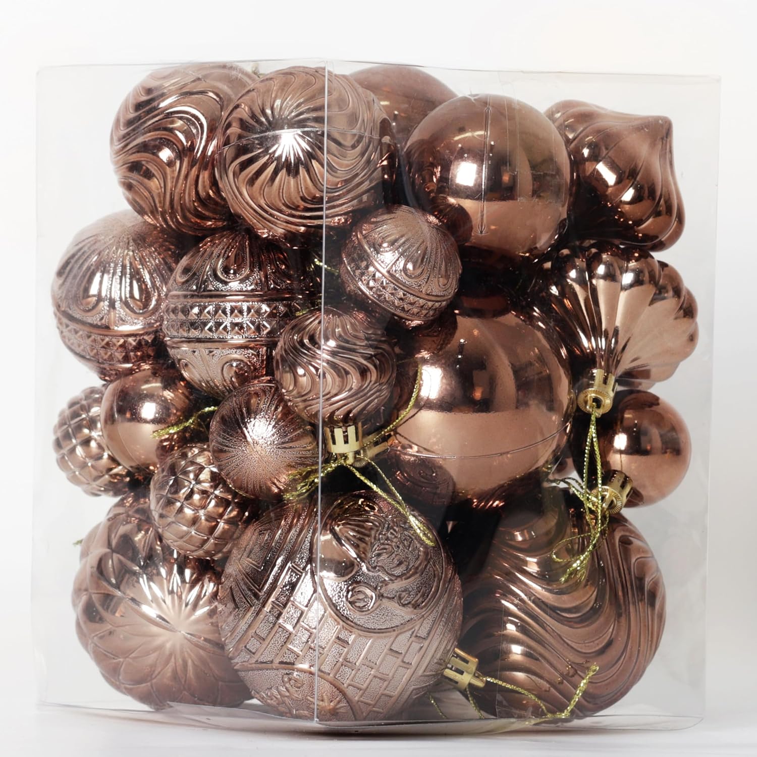Christmas Ornaments Set with 36pcs Shatterproof Christmas Tree Decorations Multi-Size Christmas Ball Ornaments with 7 Styles Brown