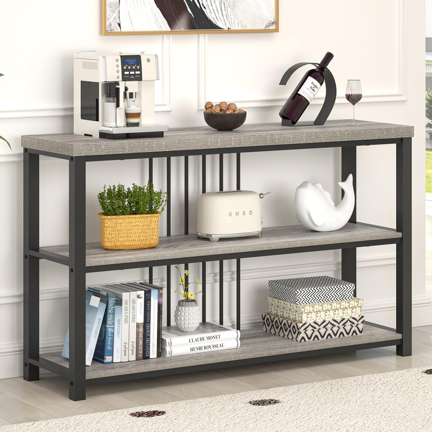 FOLUBAN Console Tables for Entryway, Sofa Table with 3 Tier Storage for Living Room Hallway Foyer Behind Couch, Rustic Light Grey