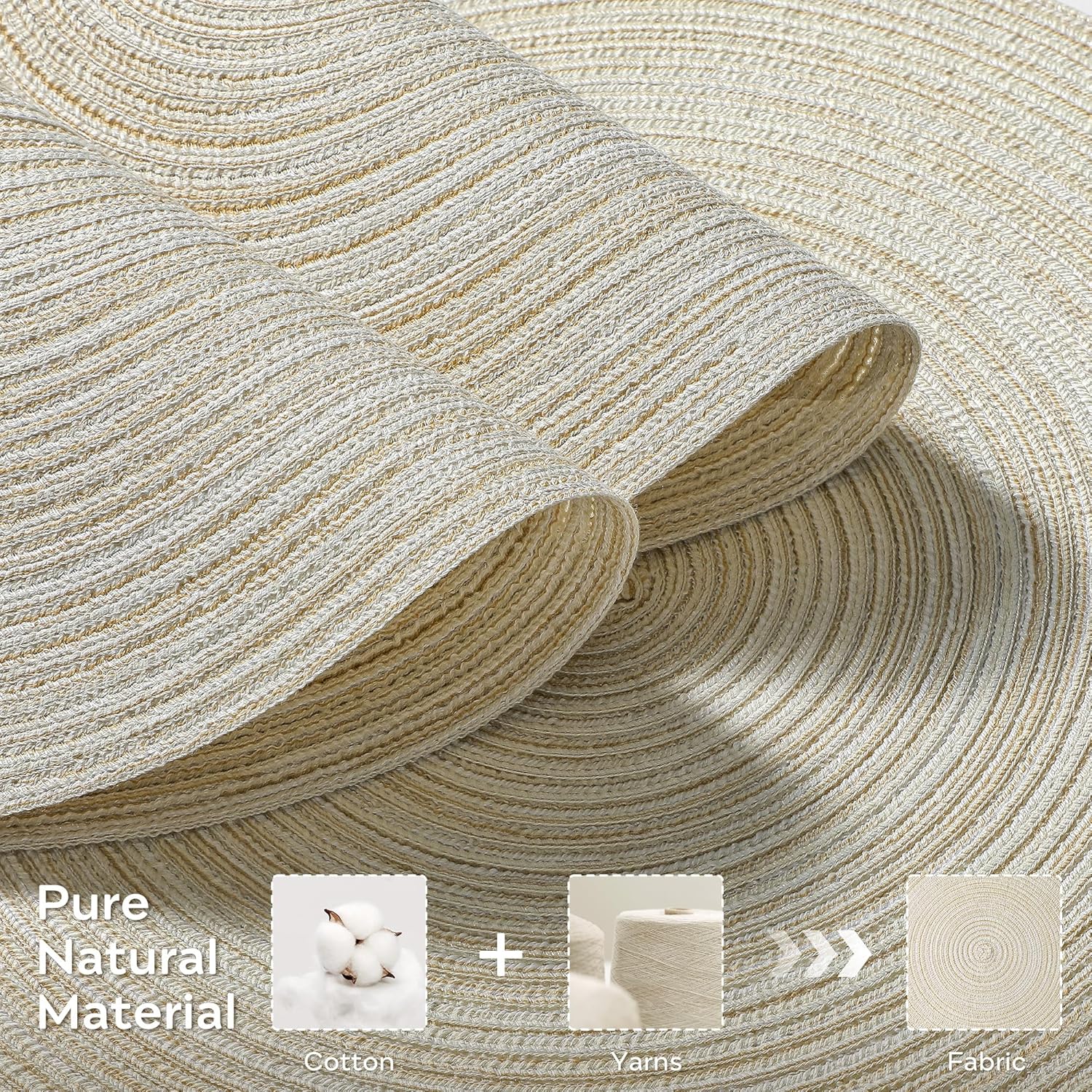 Leetaltree Round Placemats Heat and Slip Resistant Cotton Table Mats, Washable Bohemian Placemats for Dining Tables (White Beige, Set of 12)
