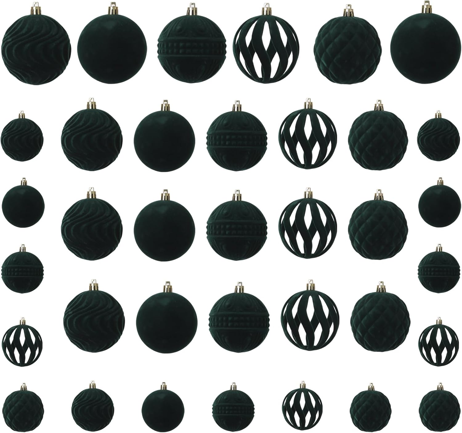 Senjie 2025 Velvet Christmas Ball Ornaments Sets 36pcs Flocked Christmas Ornaments Assortment Decor for Xmas Deep Green