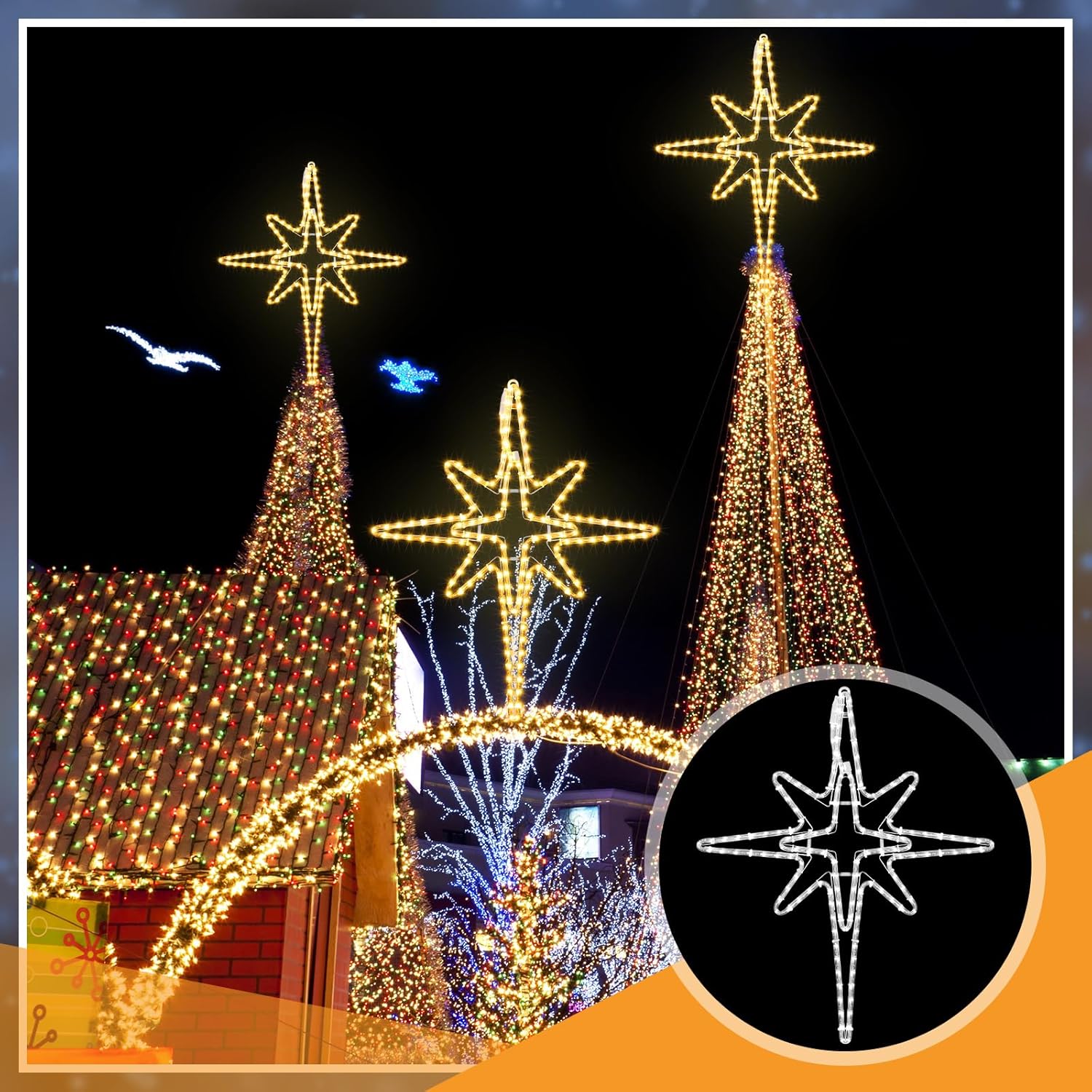 - Reliable Iron Frame: the outside Christmas star adopts a quality iron frame and bright LED beads, a stunning design that adds a touch of elegance to most spaces, bringing a different kind of feeling to the family