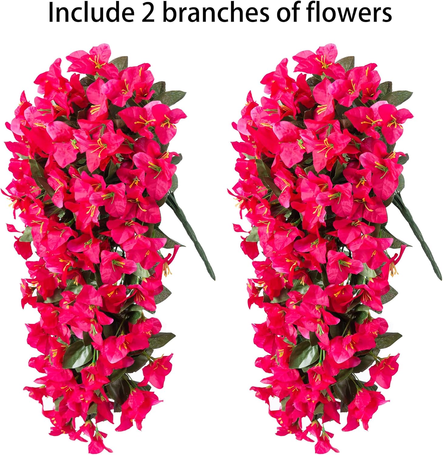 Faux Bougainvillea Artificial Flowers Plants for Outdoors Outside Decoration, 2 PCS Fake Flowers Silk Long Trailing Vines UV Resistant Realistic for Front Door Porch Planter Urn Patio Balcony Hot Pink