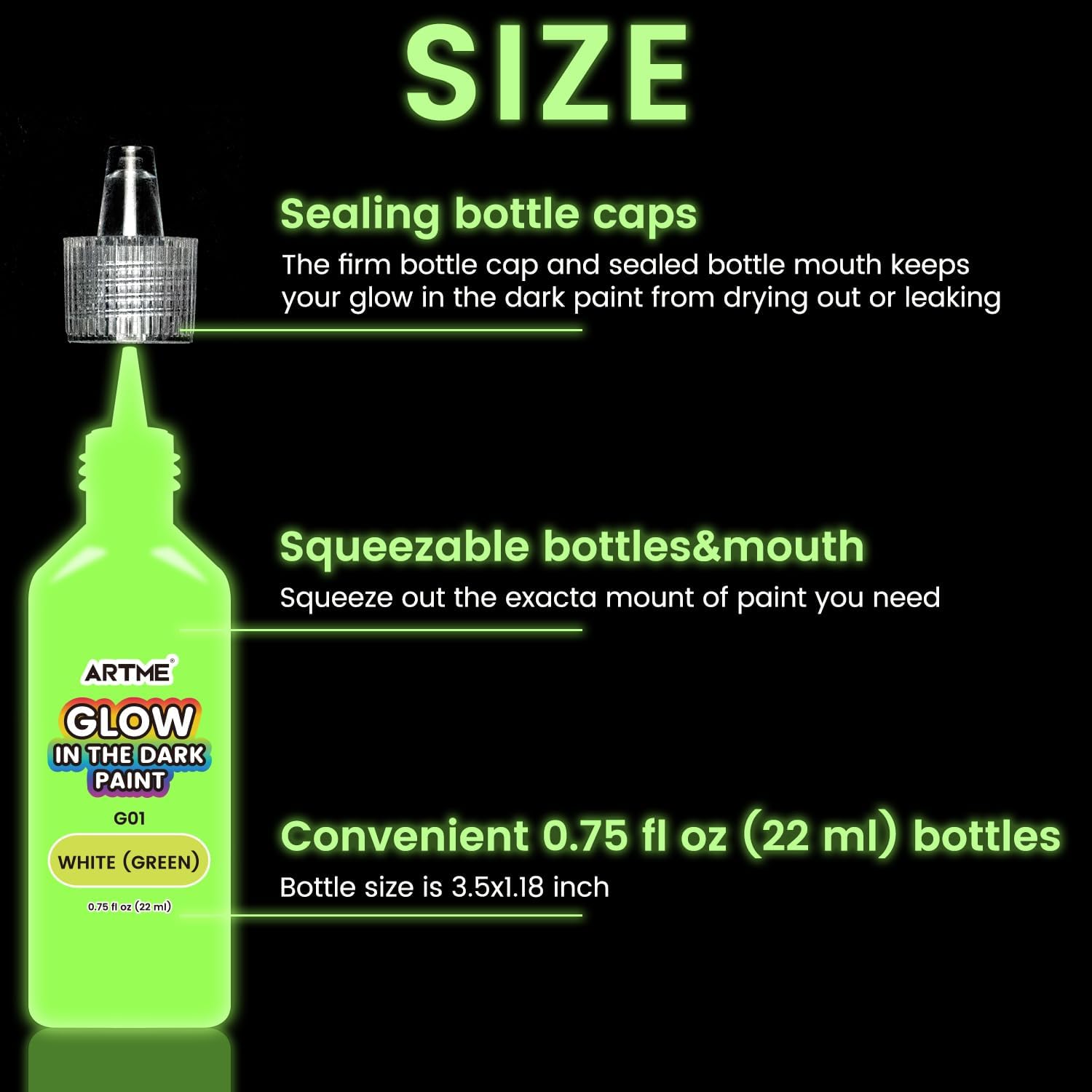 ARTME Glow in The Dark Paint, 18 Bright Colors 22ml/0.75oz Blacklight Paint Set, Neon Craft Paints, Glow Fluorescent Acrylic Paints Perfect for DIY projects, Halloween and Christmas Decorations