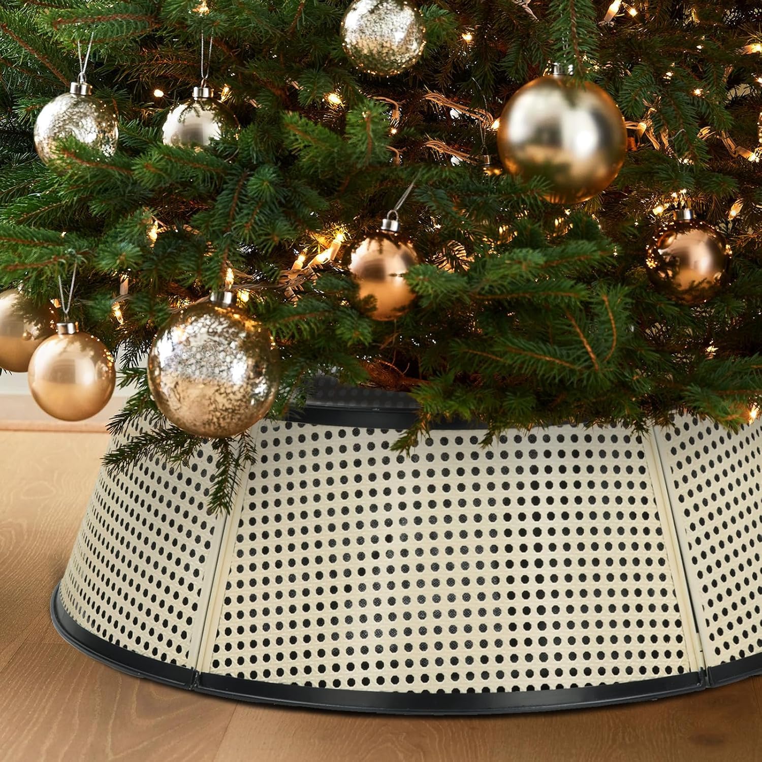 Metal Christmas Tree Collar, 28’’ D Christmas Decorative Base Cover for Christmas Tree, Tree Skirt, Tree Ring - Cream