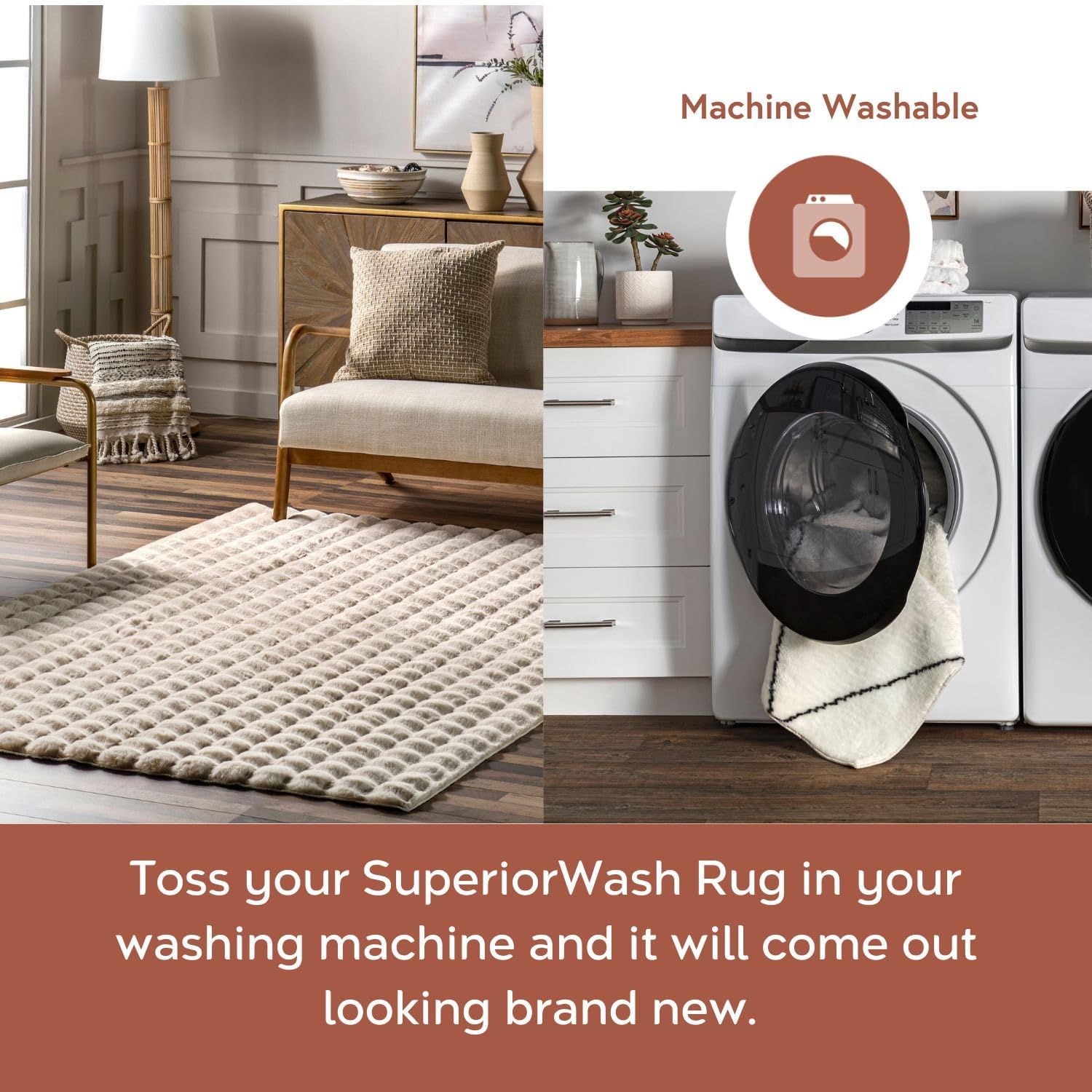 nuLOOM Jeni Solid Faux Rabbit Machine Washable Accent Rug, 3x5, Beige