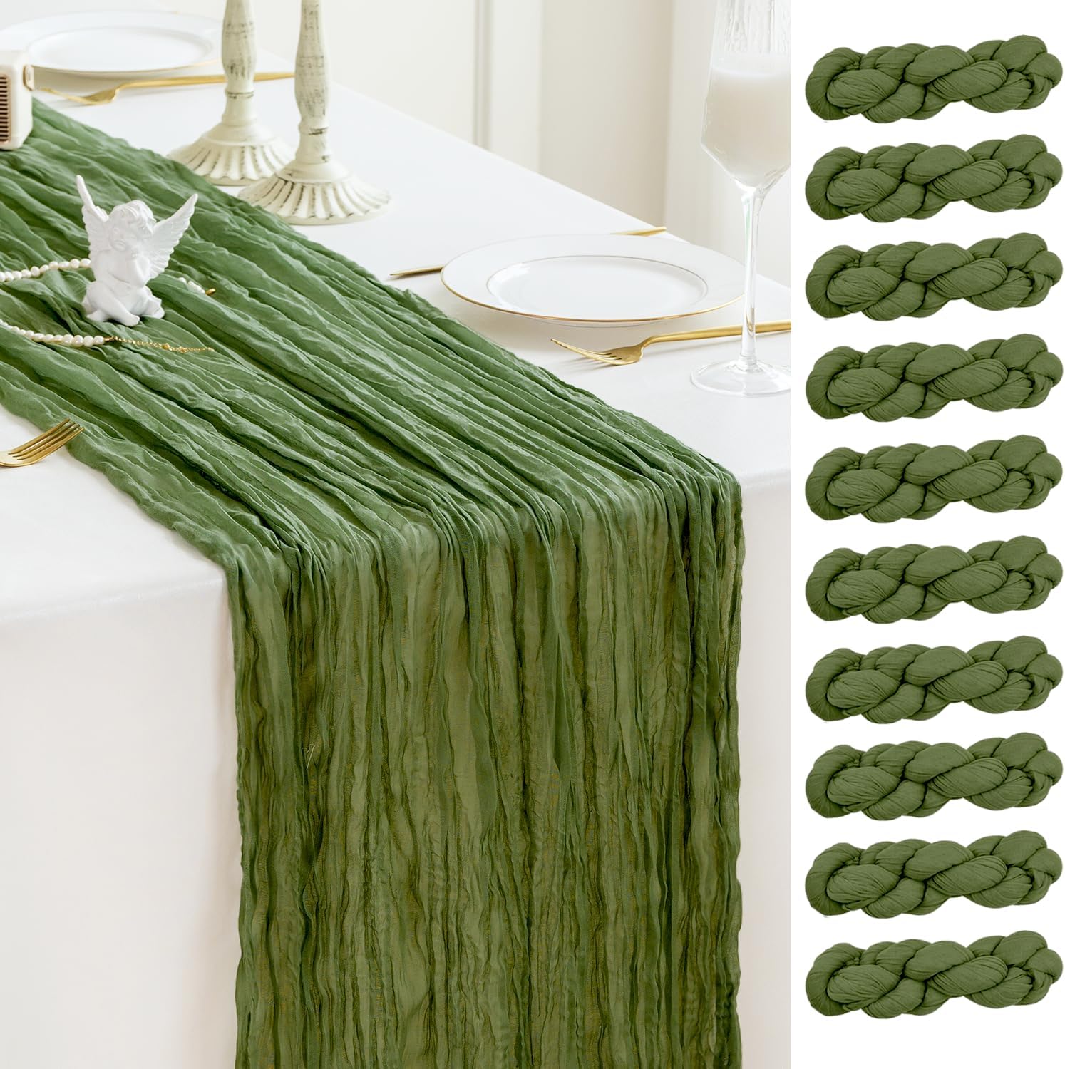 Sioloc 10 Pack Moss Green Cheesecloth Table Runner Fall Autumn Decor for Home 10ft Table Cloth for Tea Wedding Birthday Party Baby Bridal Shower Halloween Thanksgiving