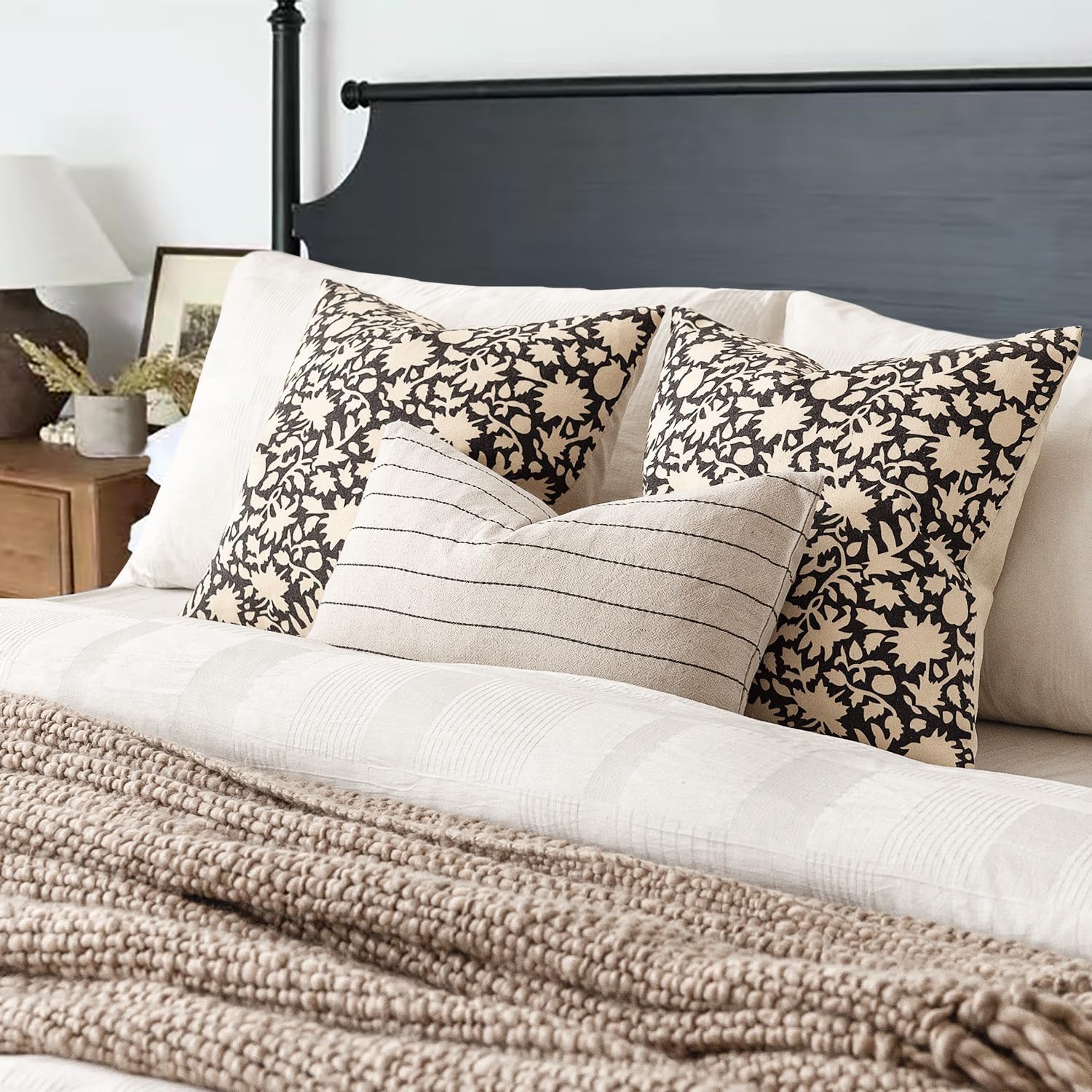 Foindtower Set of 2 Decorative Neutral Floral Throw Pillow Covers Accent Farmhouse Cushion Covers Boho Vintage Pillowcase for Couch Sofa Bedroom Living Room Home Decor Outdoor22×22 Inch,Black