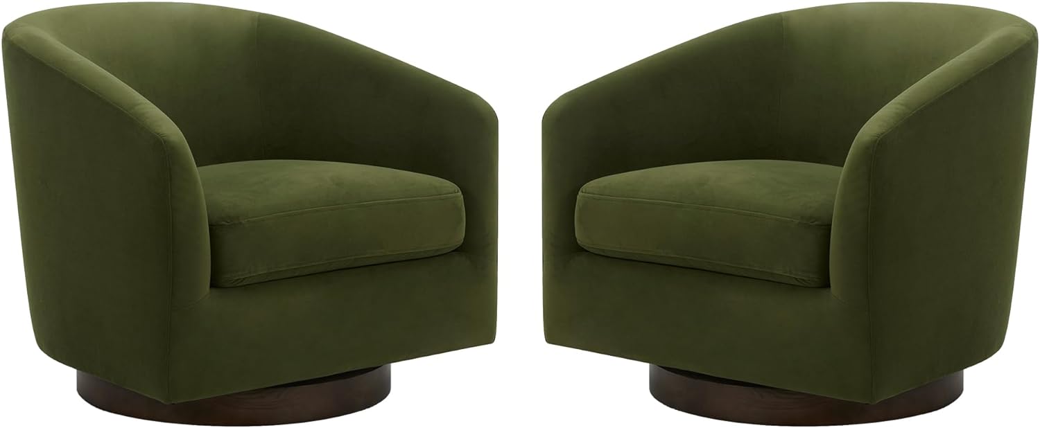 CHITA Swivel Accent Chair, FSC Certified Upholstered Velvet Barrel Chair for Living Room Set of 2, Fully Assembled, Forest Green