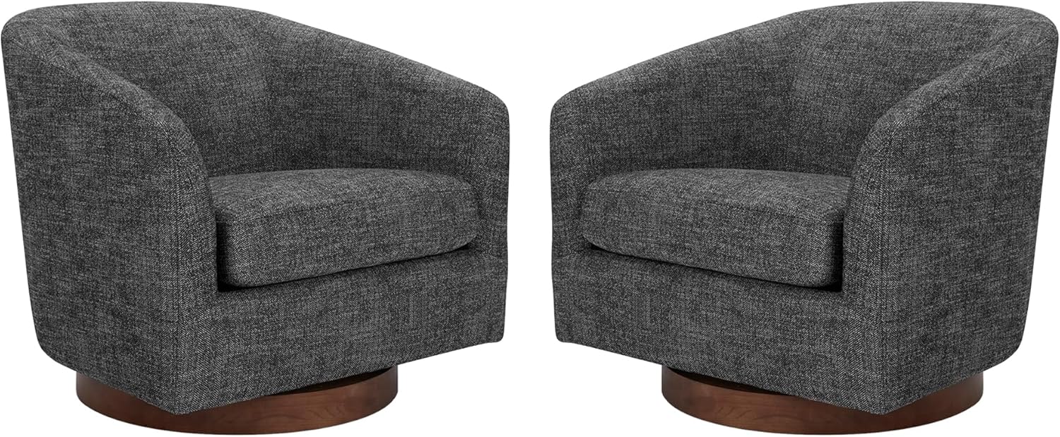 CHITA Swivel Accent Chair, FSC Certified Upholstered Fabric Barrel Chair for Living Room Set of 2, Fully Assembled, Dark Grey