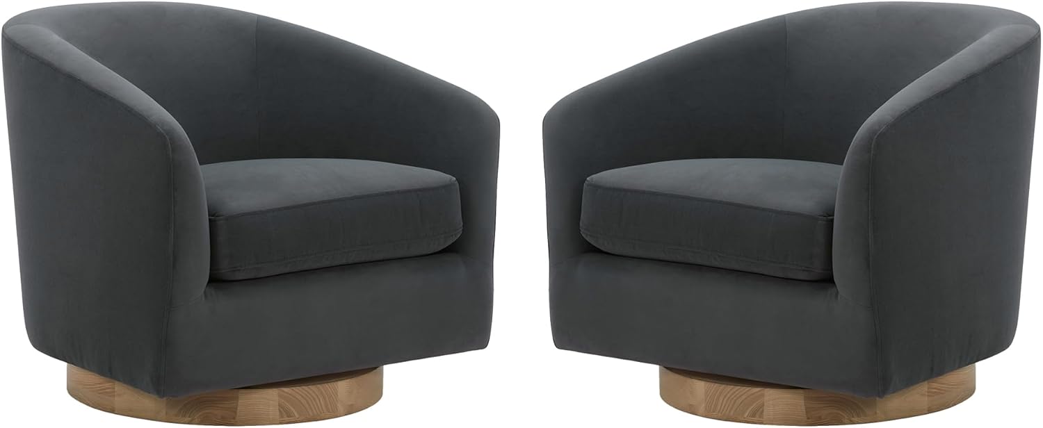 CHITA Swivel Accent Chair, FSC Certified Upholstered Velvet Barrel Chair for Living Room Set of 2, Fully Assembled, Grey