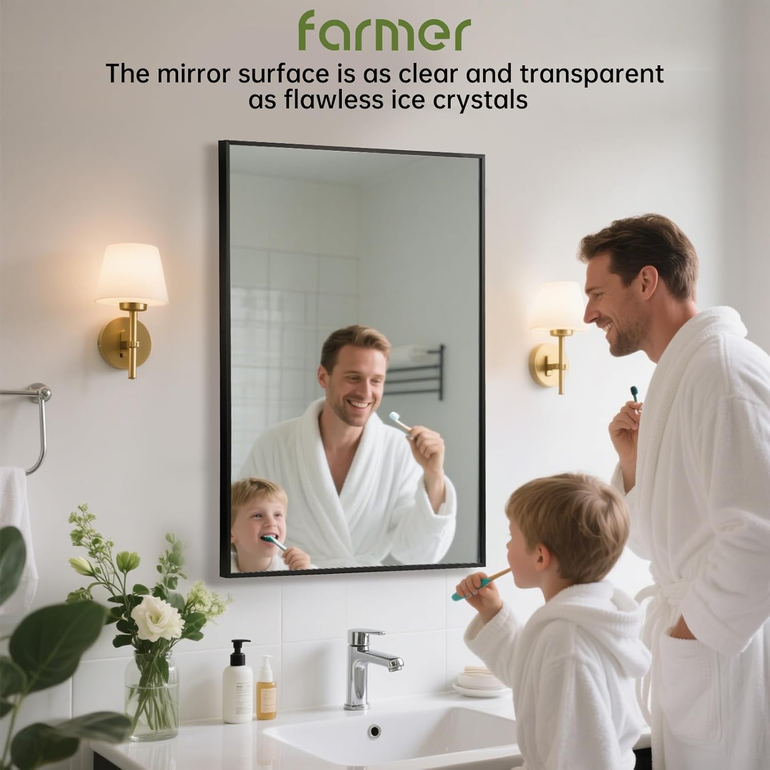 FARMER 20x30 Inch Black Bathroom Mirror, Rectangle Wall Mounted Mirror, Vanity Mirror, Brushed Square Mirror, Framed Bathroom Mirror for Bedrooms, Entryways, Living Rooms, Horizontal/Vertical