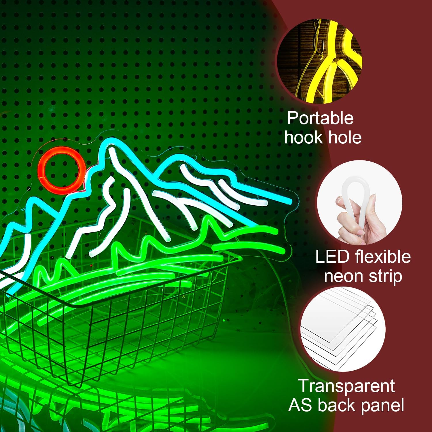 - Exquisite Neon Sign: The mountain neon sign consists of mountains, rivers, sunrise and sunset. This is a designer inspired by nature's work, pleasing to the eye. Light up with neon lights to bring a unique visual effect to your space.