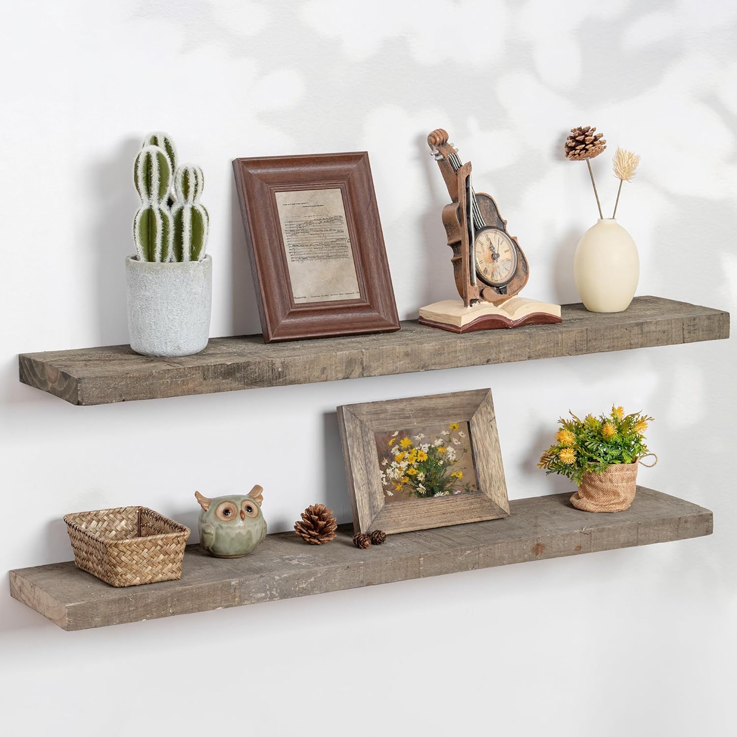 - Multifunctional & Versatile - Designed for both decoration and organization, our wood floating shelves enhance any room in your home while providing additional storage space in the livingroom, kitchen, garage or any space that needs a touch of rustic charm