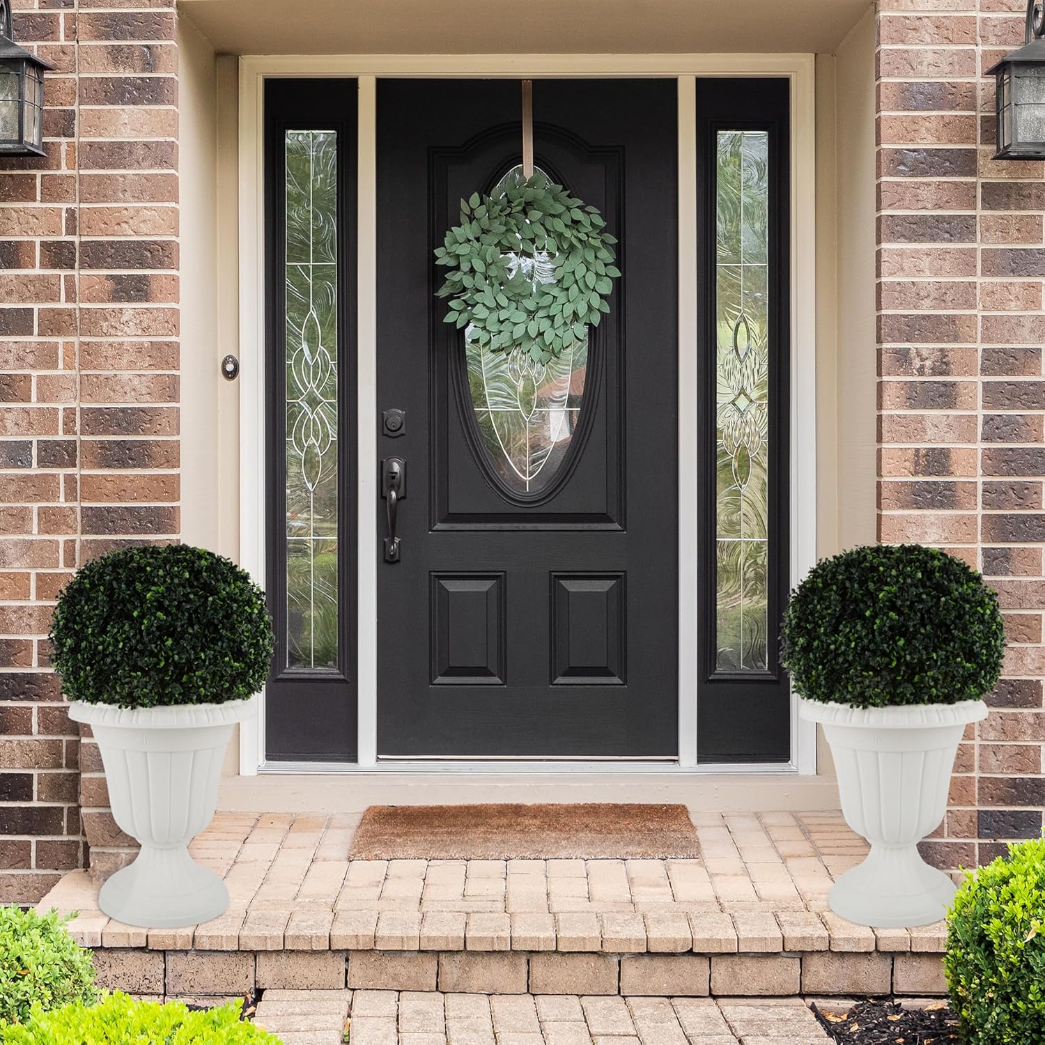 - PRODUCT DETAILS - Materials: Recycled Polypropylene Plastic. Dimensions: (L) 16” x (W) 16” x (H) 18”; Weight: 3.8lbs; Interior Planting Space: 13” Diameter x (H) 12.75”; Soil Capacity: 30lbs/13.6L. Front Door Planters Outdoor Set of 2. Color: White.