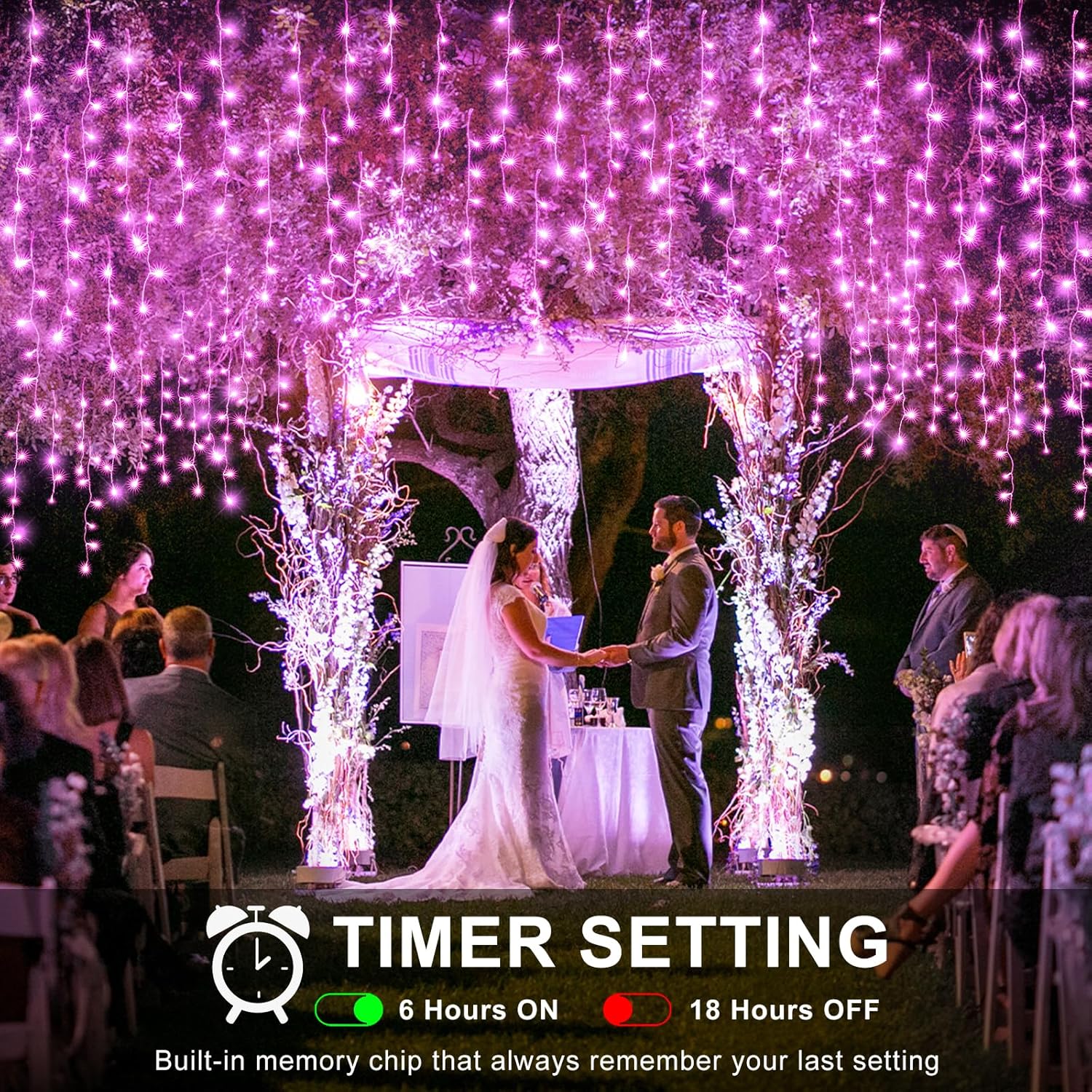 Icicle Lights for Outside, 33FT 400 LED Christmas Lights Outdoor Indoor with 8 Modes 75 Drops, Waterproof Plug in Curtain Twinkle String Light for Home Roof Yard Window Patry Wedding Decor, Pink