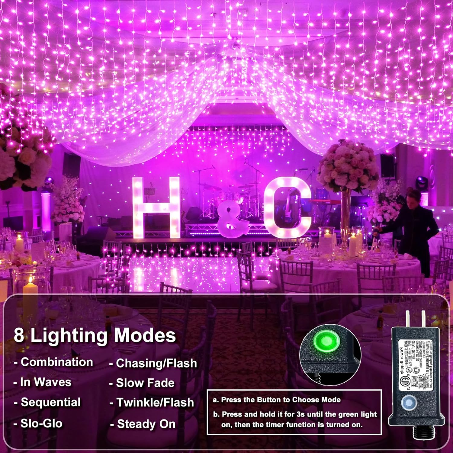 - 【Durable and Safe Design】These Christmas icicle lights are UL safety certified, operating at 29 volts with a 6-watt power consumption, ensuring both safety and energy efficiency. They stay cool to the touch even after extended use. Each curtain twinkle light is crafted with high-quality clear wire featuring an insulation coating, offering excellent resistance to corrosion and aging.