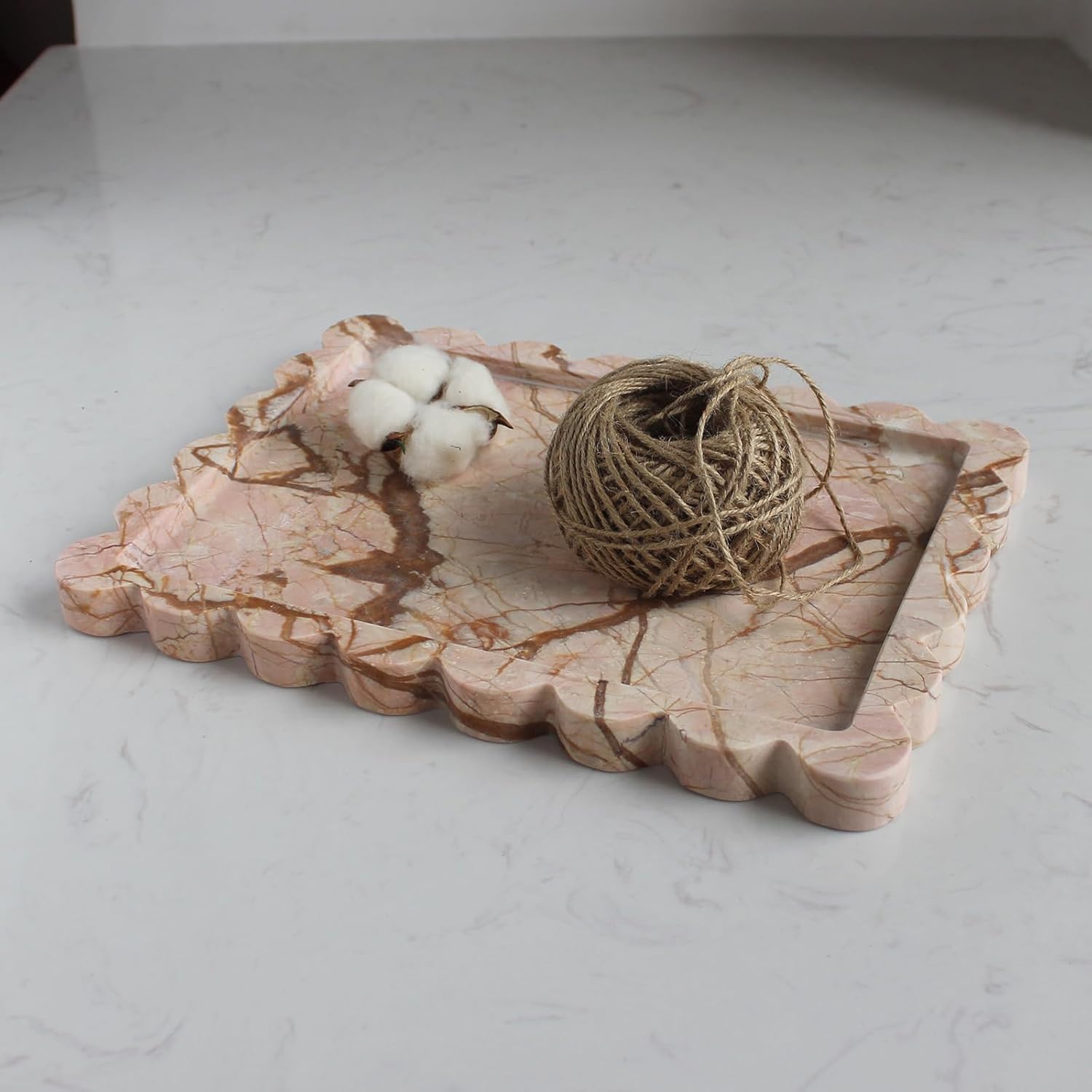 Natural Luxury Scalloped Marble Tray 10.8"x8", Rectangle Vanity Tray for Bathroom Kitchen Counter, Decorative Tray for Dresser Home Decor (Pink Marble)