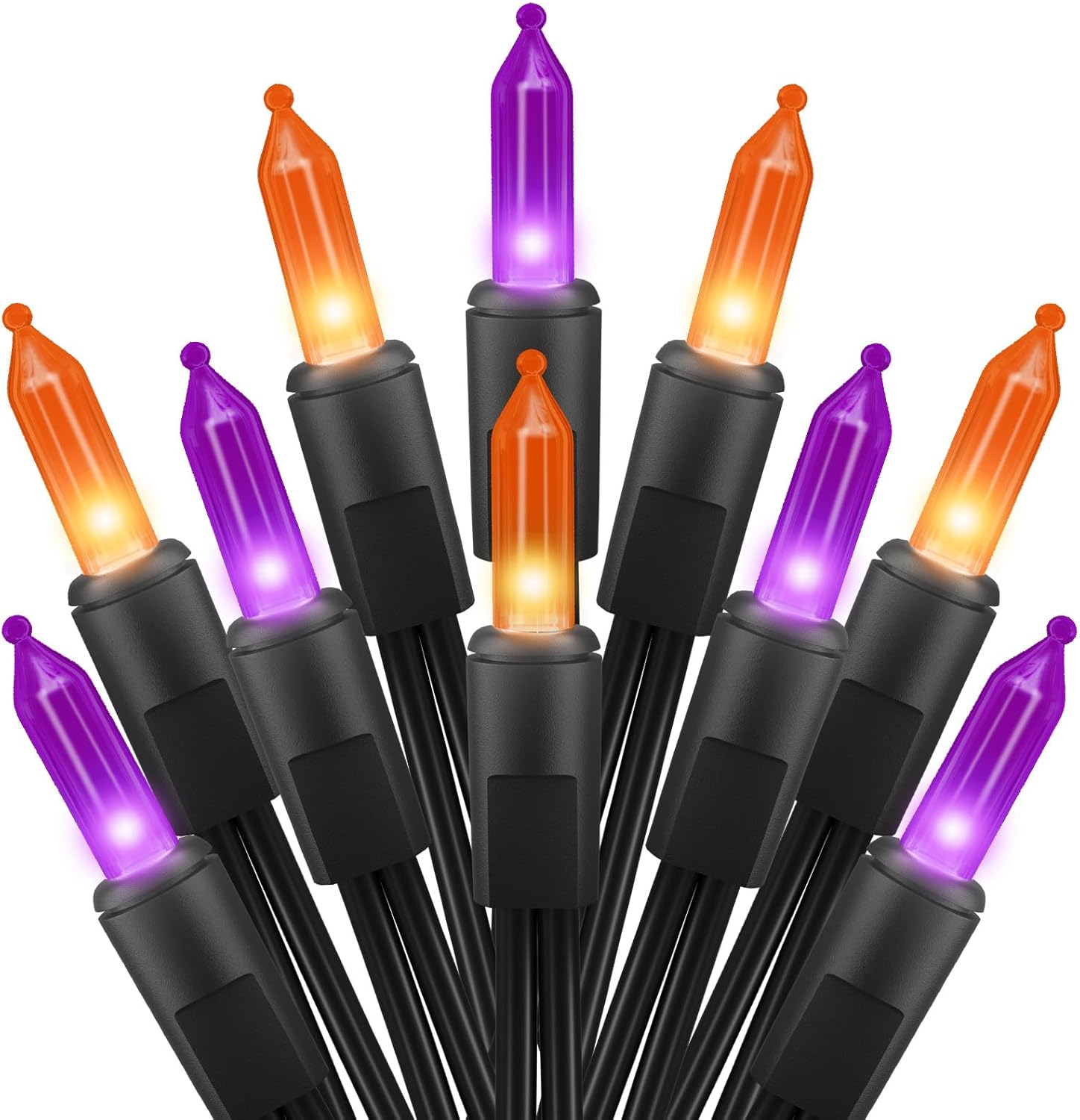 - Clear Halloween Lights: Incandescent Halloween orange &purple Lights, 13 feet orange &purple lights set with shimmering 50 count orange &purple mini bulbs, 3 inches amazing spacing for reasonable winding around the other haunted stuff like pumpkin, ghost, witch, and more, 18 inches lead cord for stretching out from indoor to outdoor, an ideal Halloween essential decoration