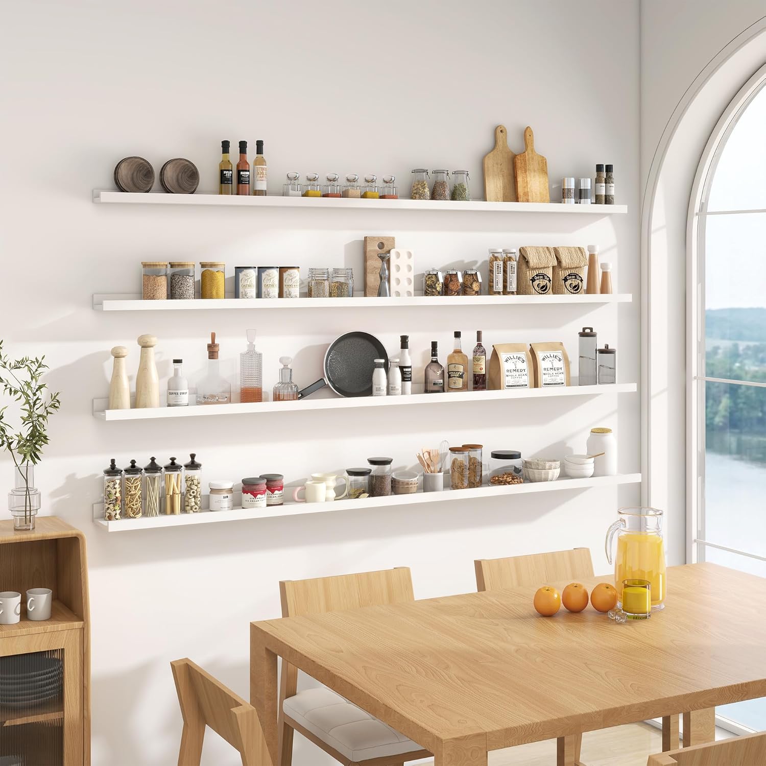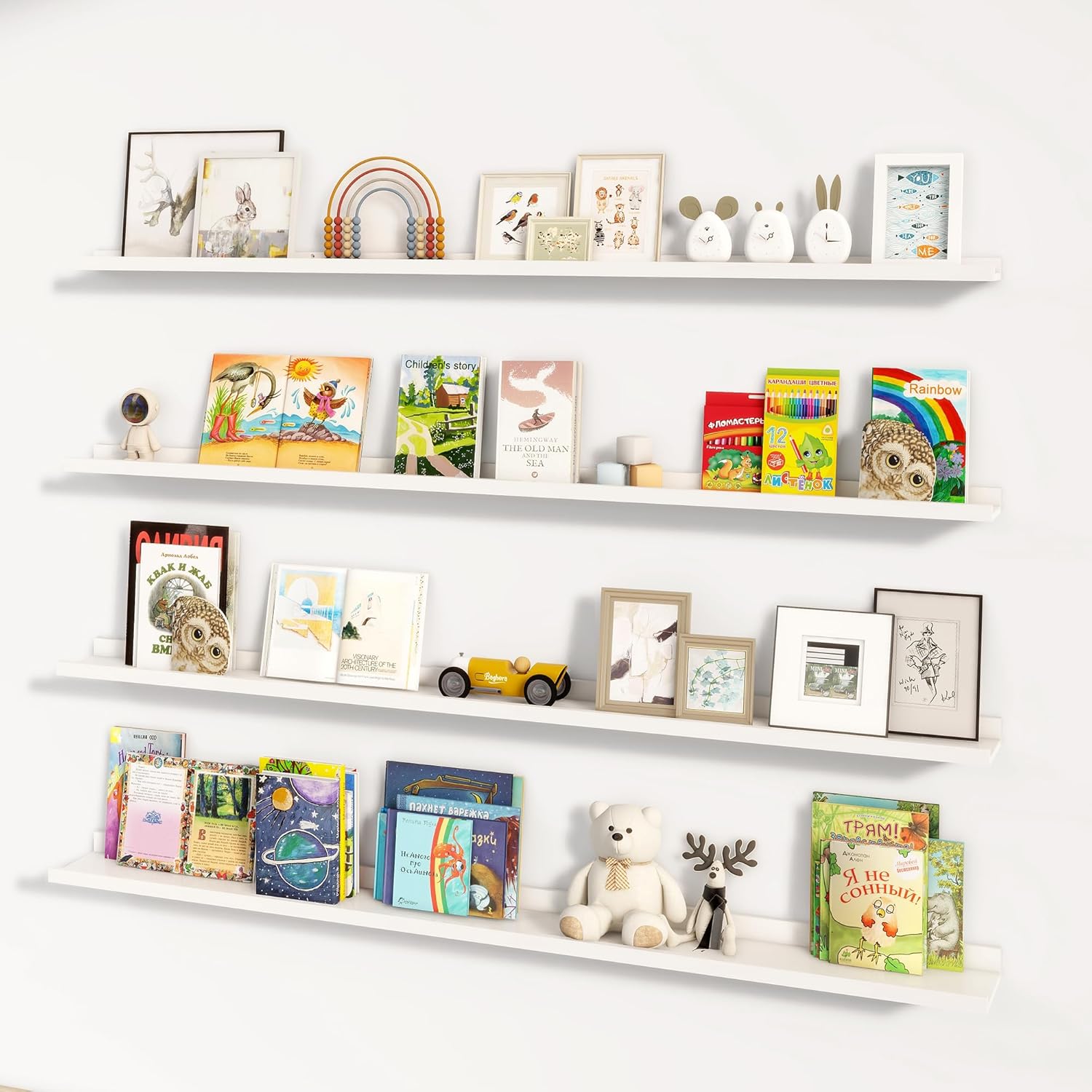 Picture Ledge Shelf for Wall, 72 inch Nursery Book Shelves 4 Packs, Large Long Floating Ledge Shelves for Kid's Room Bedroom Bathroom Living Room Photo Frames Office Nursery Wall Decor, White