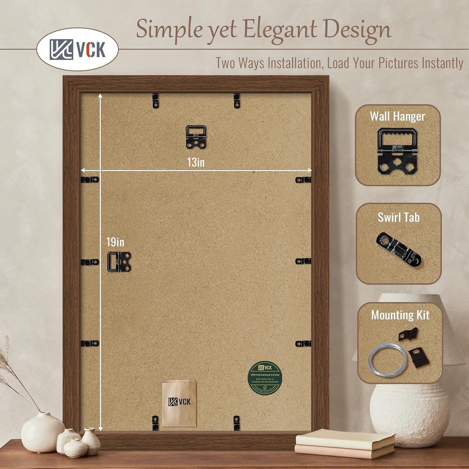 - Elegant Charm: VCK brown wood-grain picture frame. Drawing inspiration from Appalachian ancient forests, seamlessly blends modern minimalist design with natural aesthetics. This versatile addition enhances any decor, elevating the aesthetic value of your space