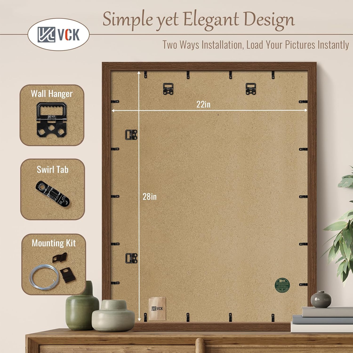 VCK 22x28 Picture Frame 3 Pack, Brown Wood Poster Frame with Exclusive Wood Grain, Wall Mounting Hanging