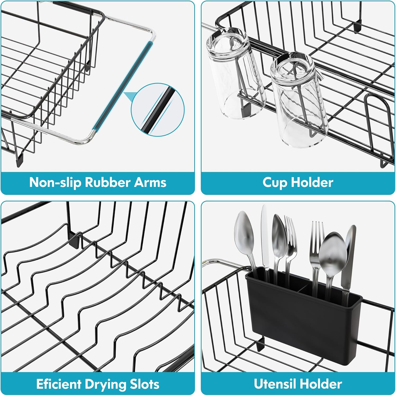 - Rustproof & Sturdy: Dish drying rack in sink is made of food-grade Stainless Steel and constructed of thickened tube pipes, Stable and High Load Bearing, which can effectively prevent rust and deformation. What's more, it can be cleaned effortlessly under running water