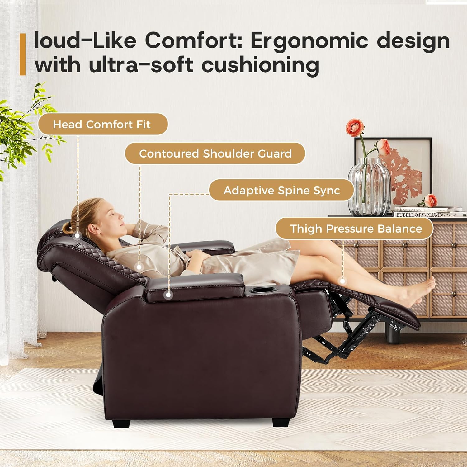 ANJ Power Home Theater Seating Set of 3, Brown Faux Leather Electric Recliner Chair with Powered Headrest, Dual Motors Movie Reclining Chairs with LED Lights,USB Port,Cup Holders, Hidden Arm Storage