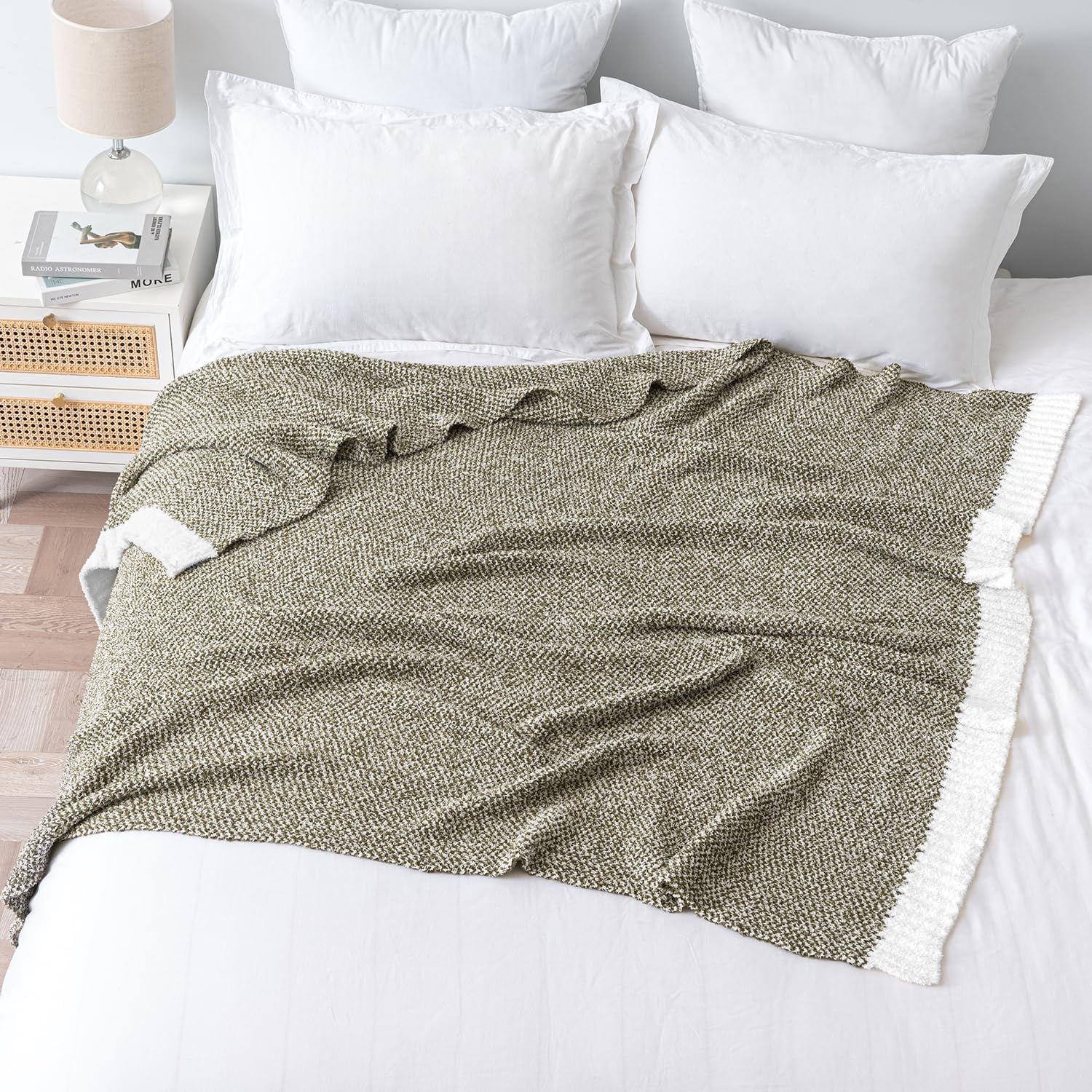 MIULEE Super Soft Throw Blanket for Couch, Olive Green Cozy Fluffy Warm Blankets Lightweight Knit Throw Blankets for Sofa, Bed, Chair, Living Room, Camping, Picnic, 50 x 60 inch