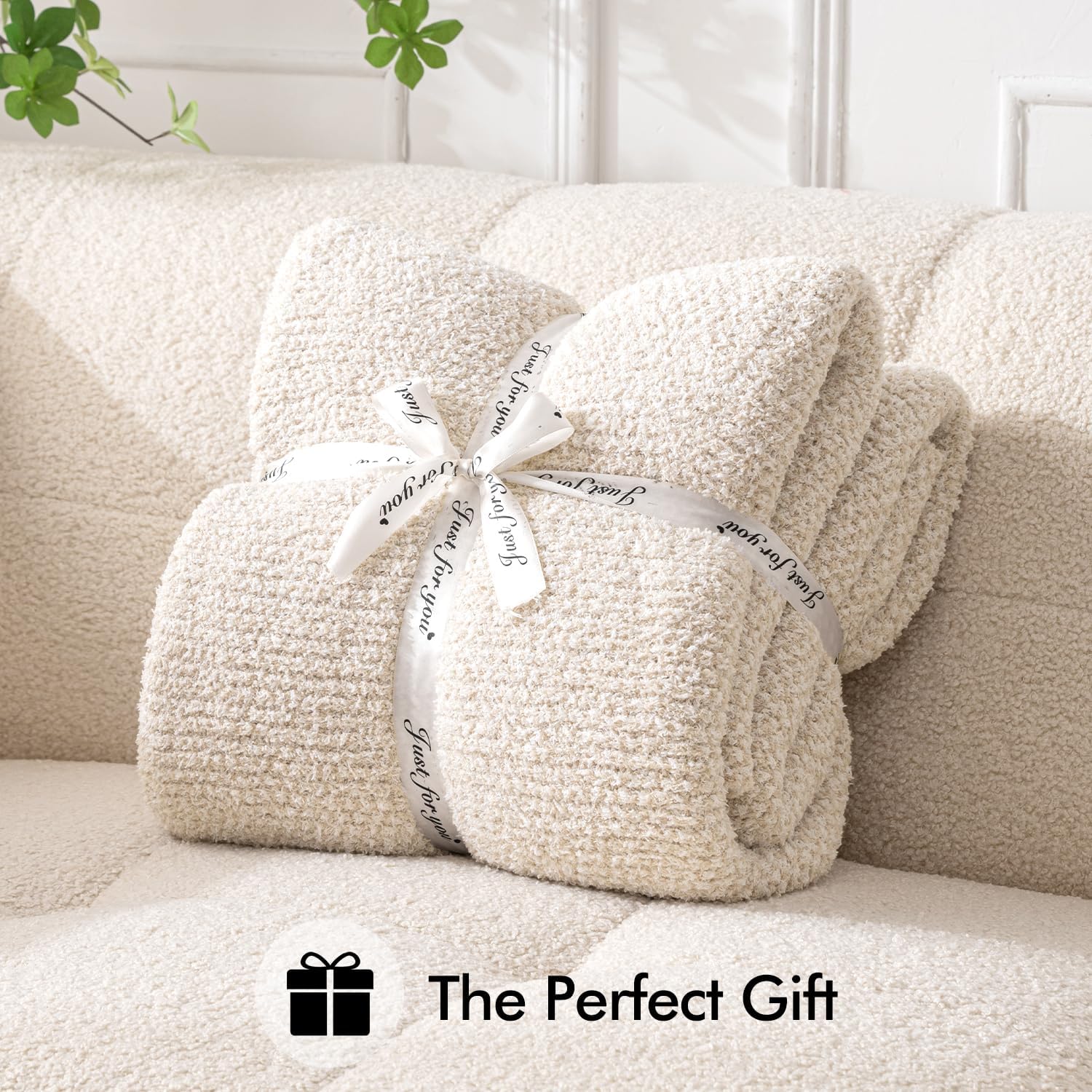 MIULEE Cream Super Soft Throw Blanket for Couch, Cozy Fluffy Warm Throws Knit Blankets for Sofa, Bed, Chair, Living Room, Camping, Picnic, 50 x 60 inch