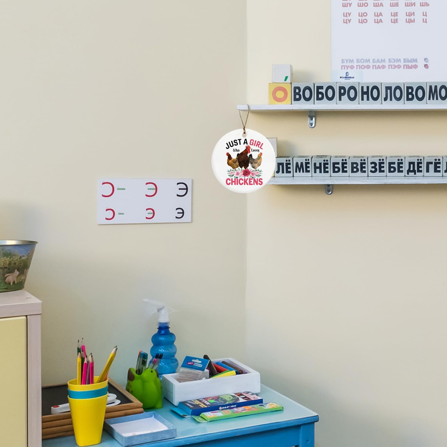 Christmas Chicken Ornaments, Chicken Gifts for Girls Chicken Lovers Women, Chicken Mom Lady Gifts, Just a Girl Who Loves Chickens Ceramic Christmas Xmas Ornament Keepsake Decorations