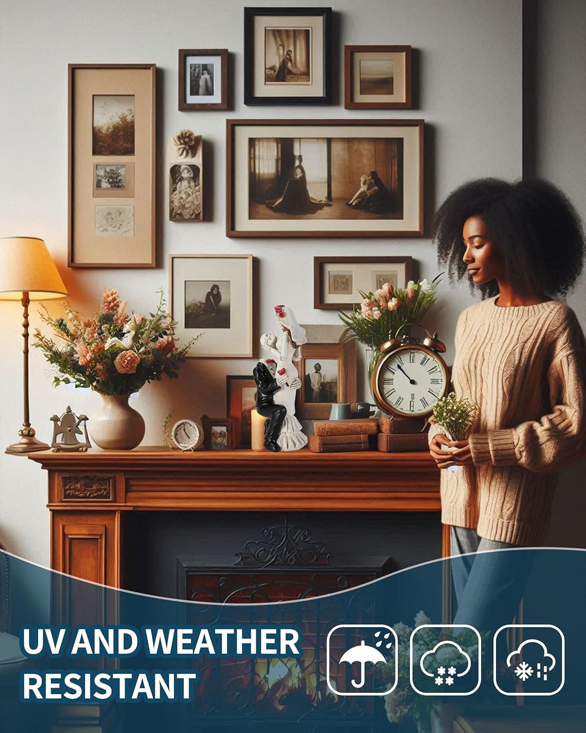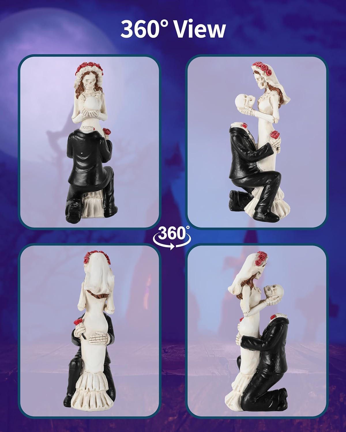 - This figurine isn’t just another ornament; it’s a statement that true love knows no bounds. Perfect for celebrating ‘Dia de los Muertos’ or adding a touch of gothic elegance to your decor, it serves as a poignant reminder that love transcends life itself.
